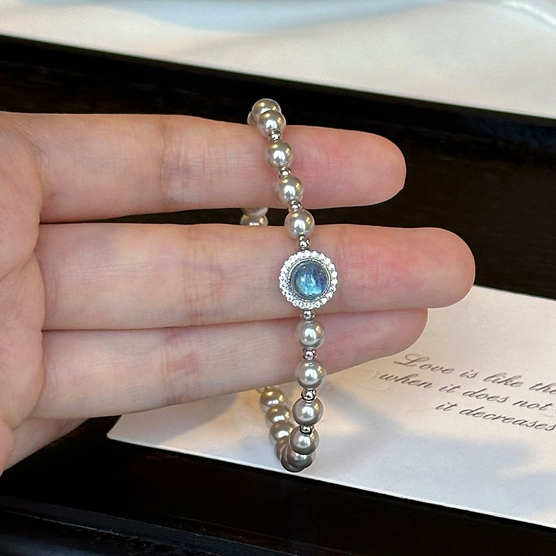 小红书同款灰色珍珠海蓝宝石手链女轻奢精致超闪手饰品一件代发