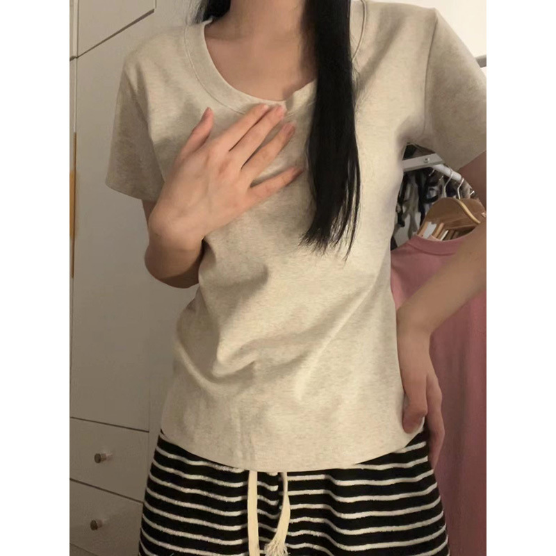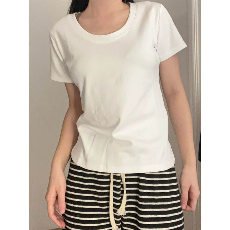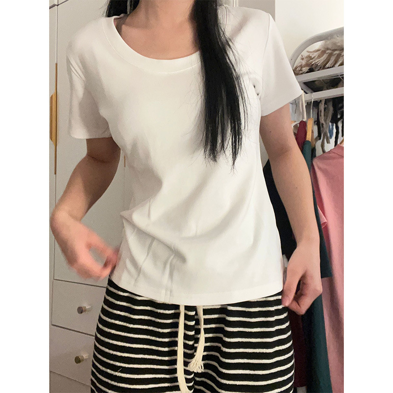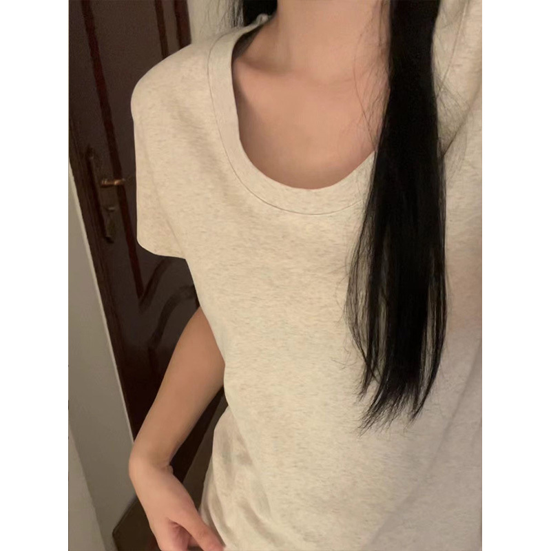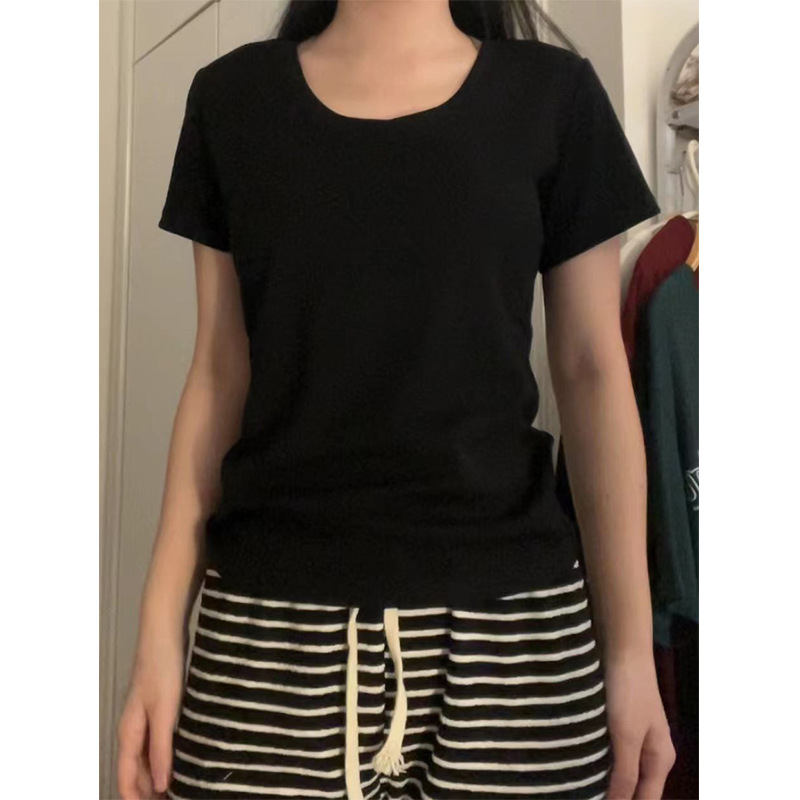 正肩短袖u领t恤女装夏季年新款修身低圆领基础款爆款上衣ins