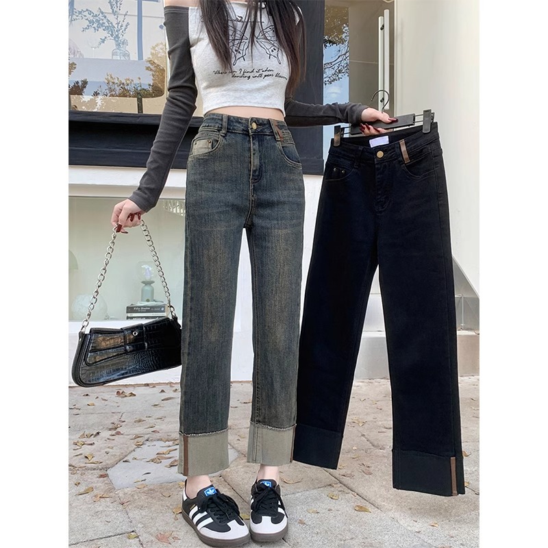 2025春季新款大码弹力牛仔裤女高腰显瘦宽松小个子九分直筒烟管裤