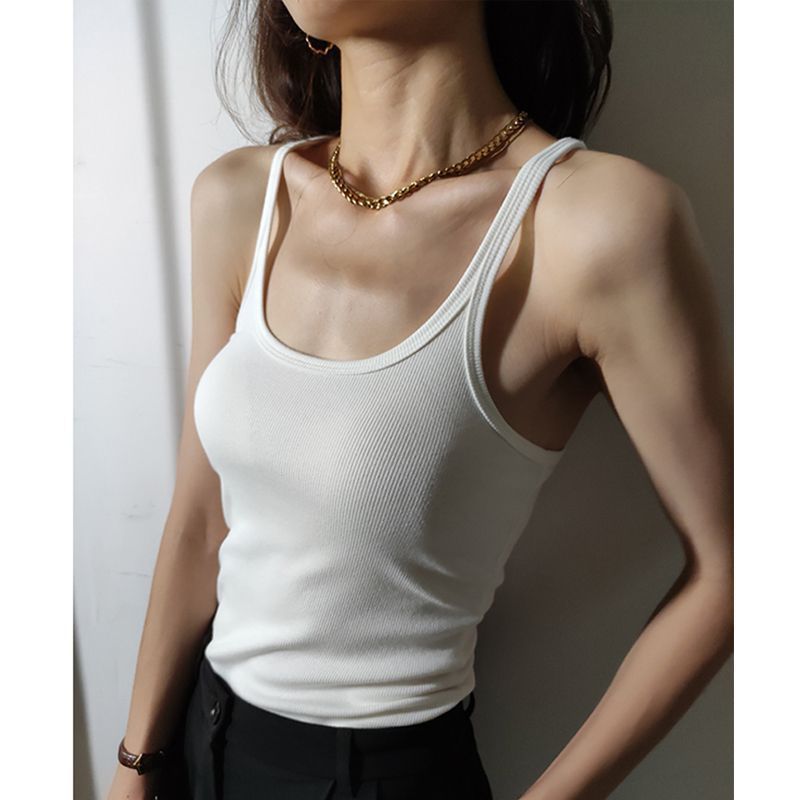 夏季美式复古bm风紧身白色细肩带工字外穿吊带背心女内搭打底上衣
