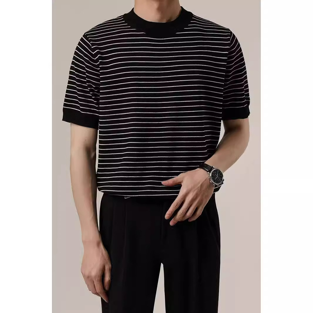 条纹短袖t恤男夏季韩版潮流简约半袖上衣港风宽松休闲潮牌体恤衫