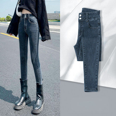 蓝灰色牛仔裤女2025高腰春秋款修身显瘦小脚裤紧身弹力铅笔裤子夏