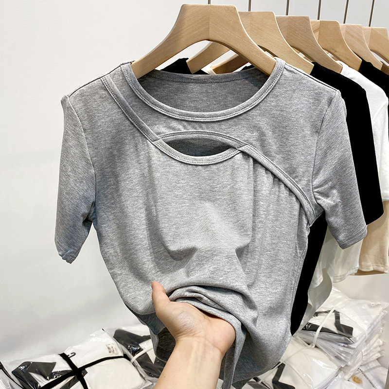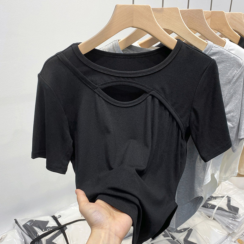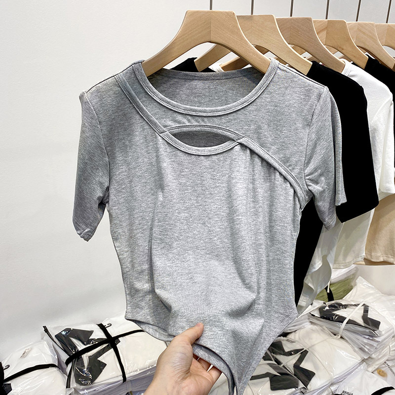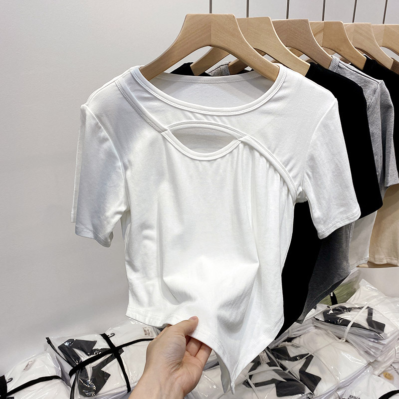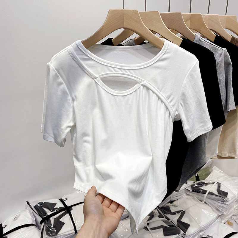 美式辣妹紧身显瘦短袖t恤女夏季新款镂空设计感小众短款高腰上衣