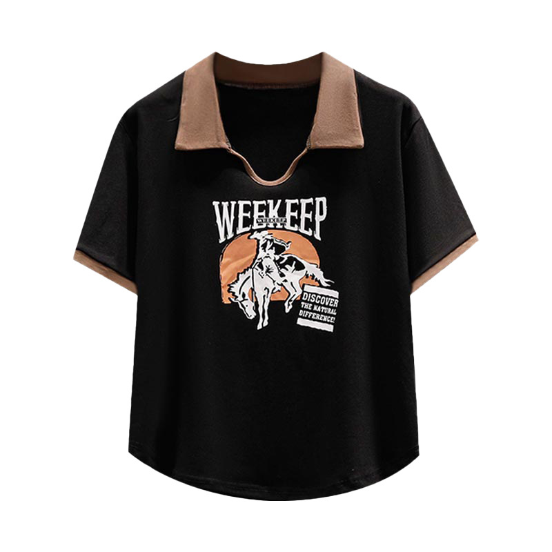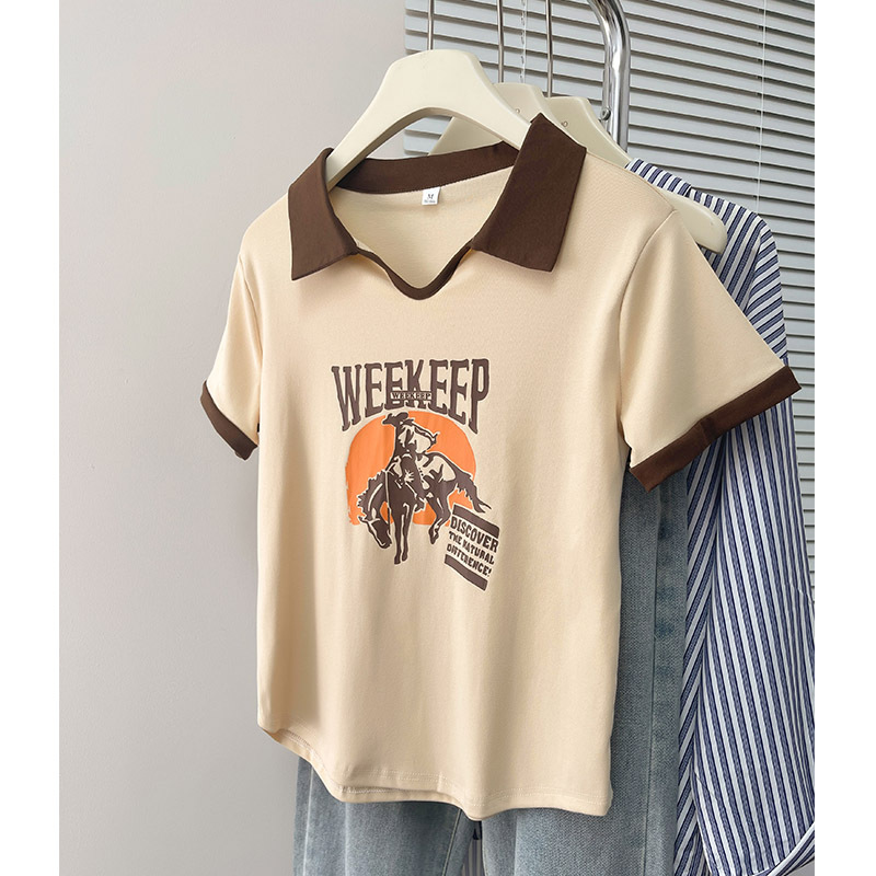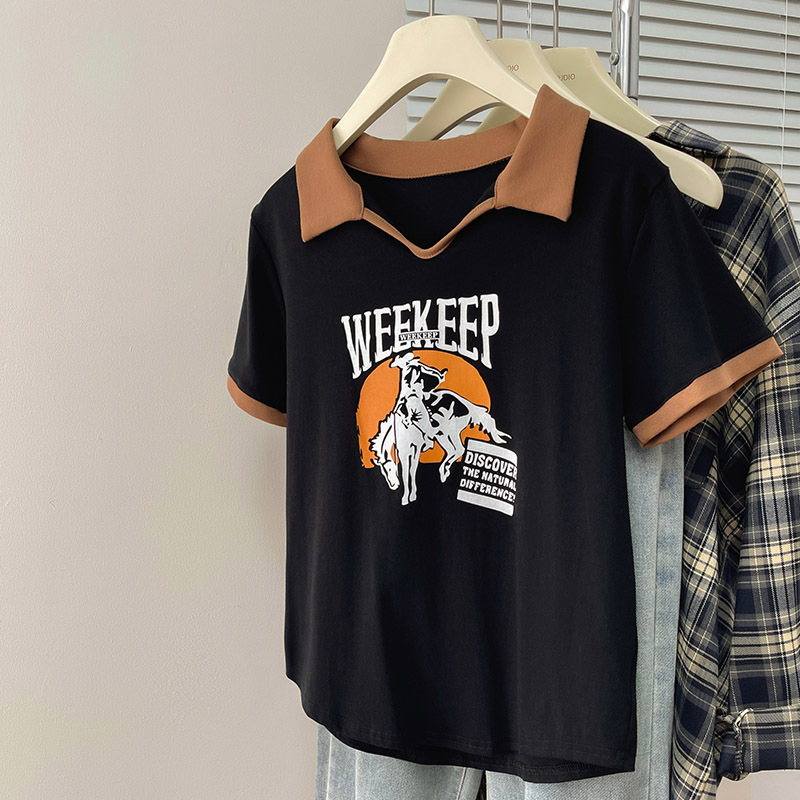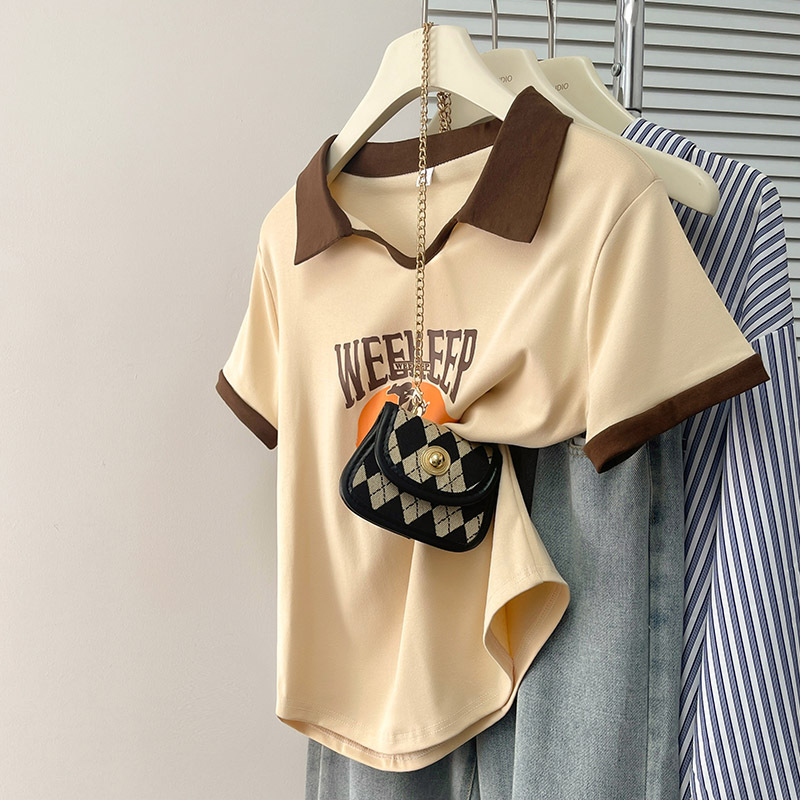 纯棉Polo衫短袖t恤女新款夏季短款宽松翻领设计感大码上衣女