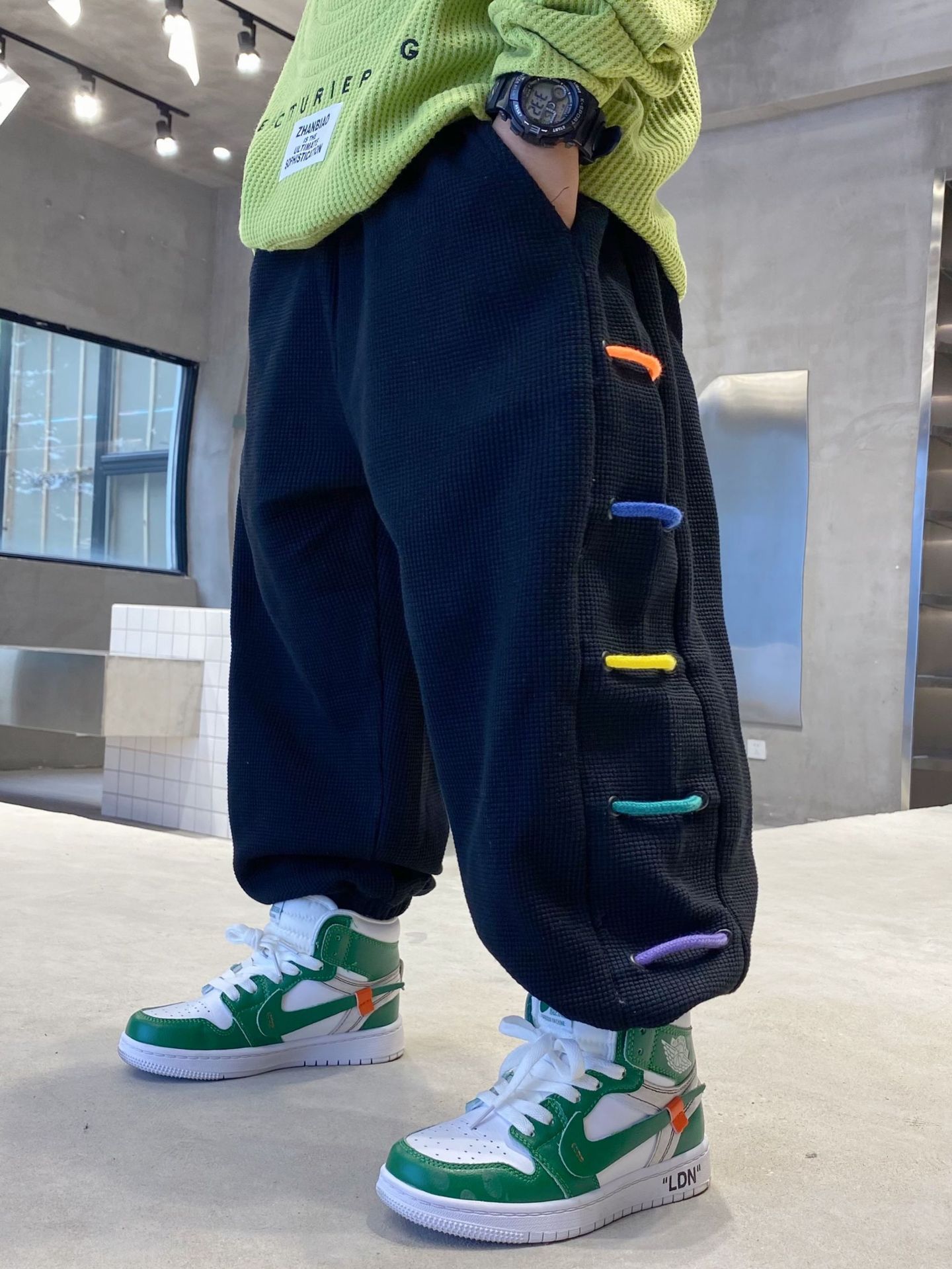 潮流华夫格长裤童装百搭文艺休闲日系宽松腰春秋裤子男孩新款裤字