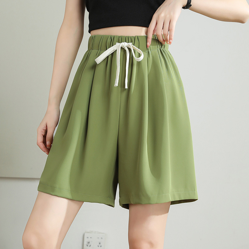 黑色西装短裤女夏季薄款宽松抽绳休闲阔腿高腰直筒a字显瘦裤中裤