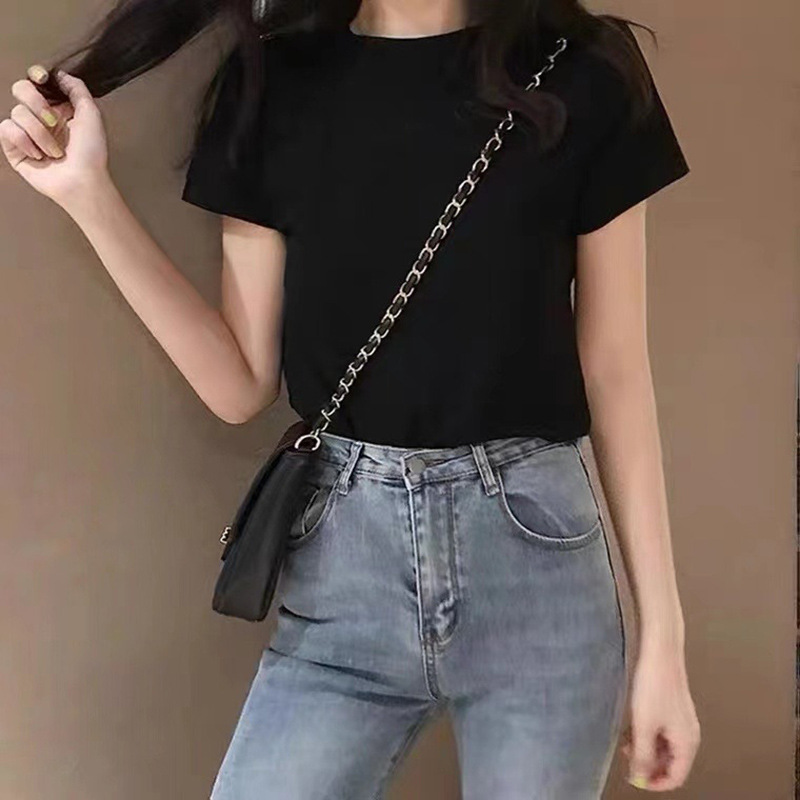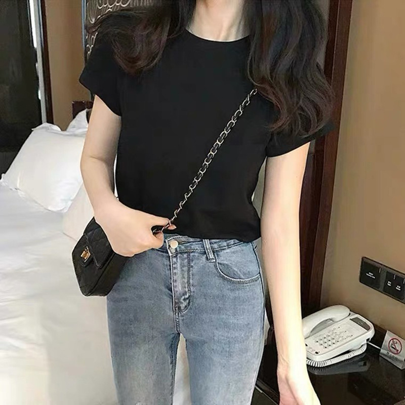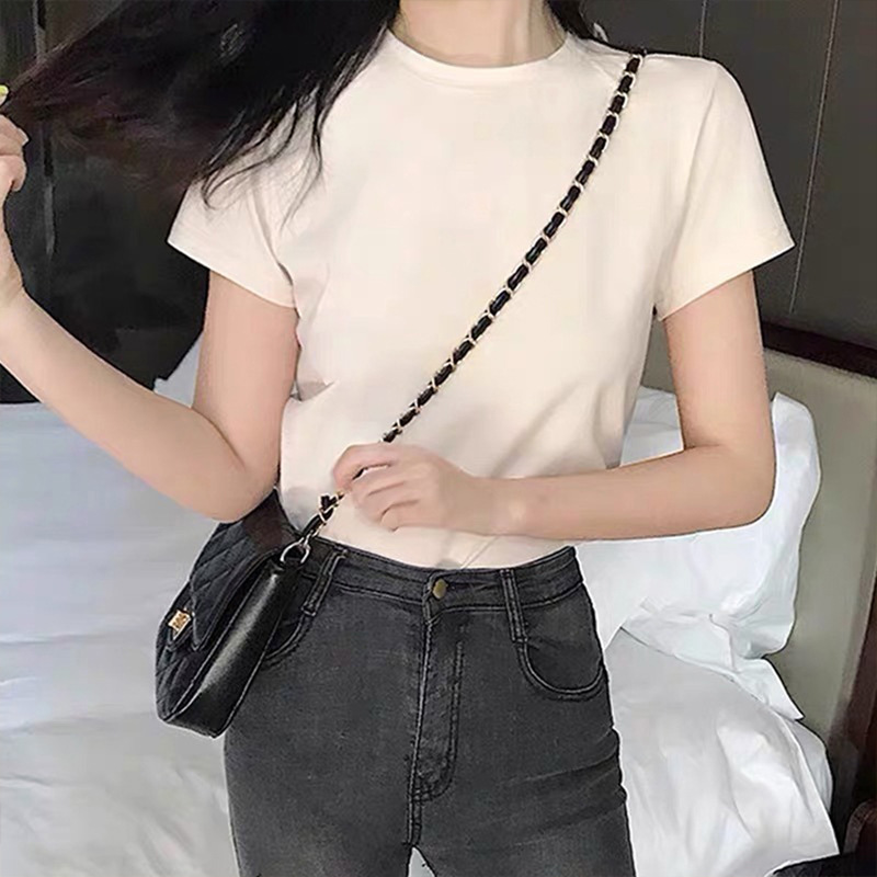 白色紧身t恤女短袖年夏季新款休闲修身ins潮网红打底半袖上衣