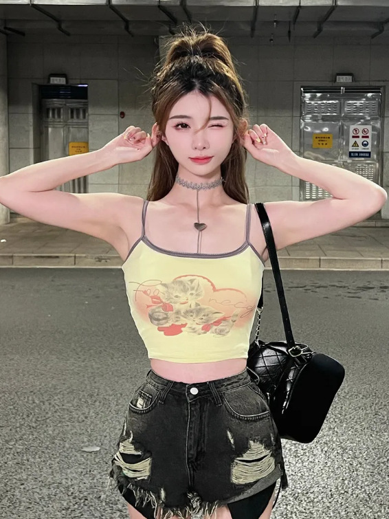 【月销10万】韩版吊带背心辣妹修身短款带胸垫夏季纯欲风别致性感