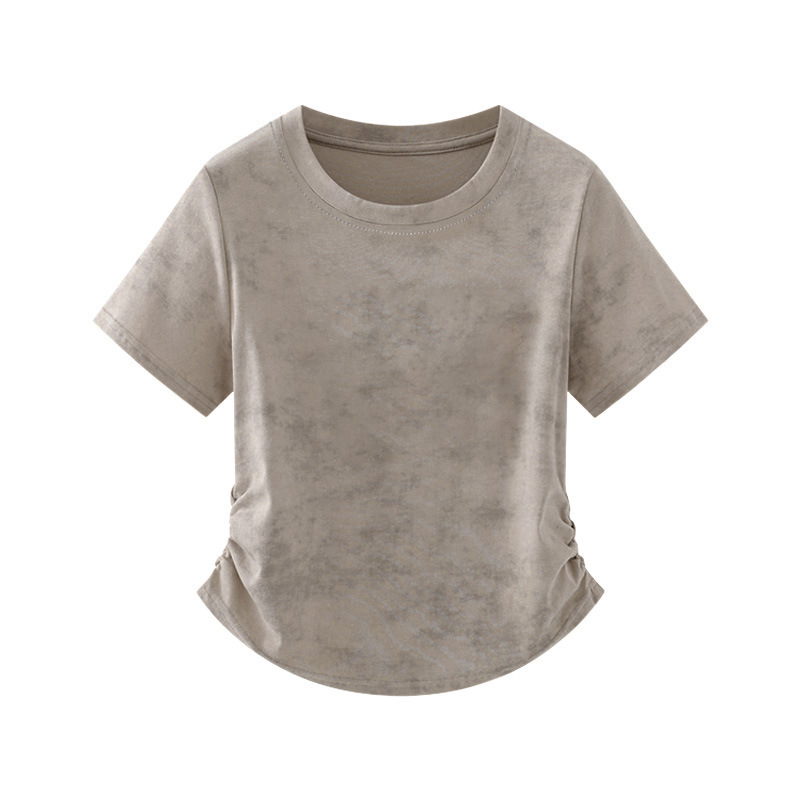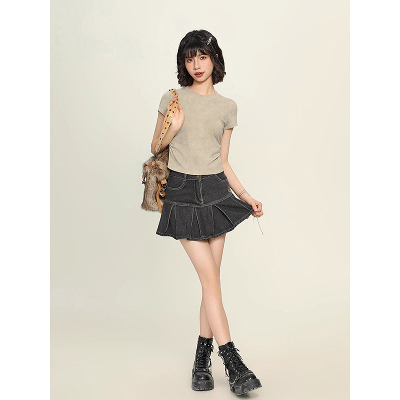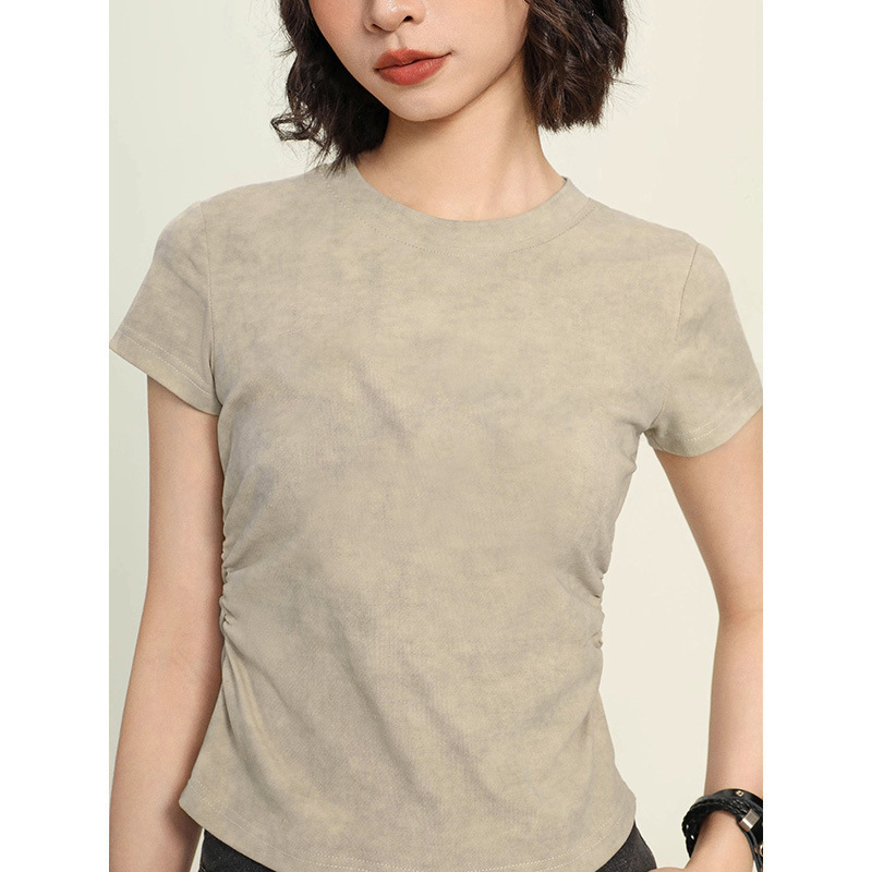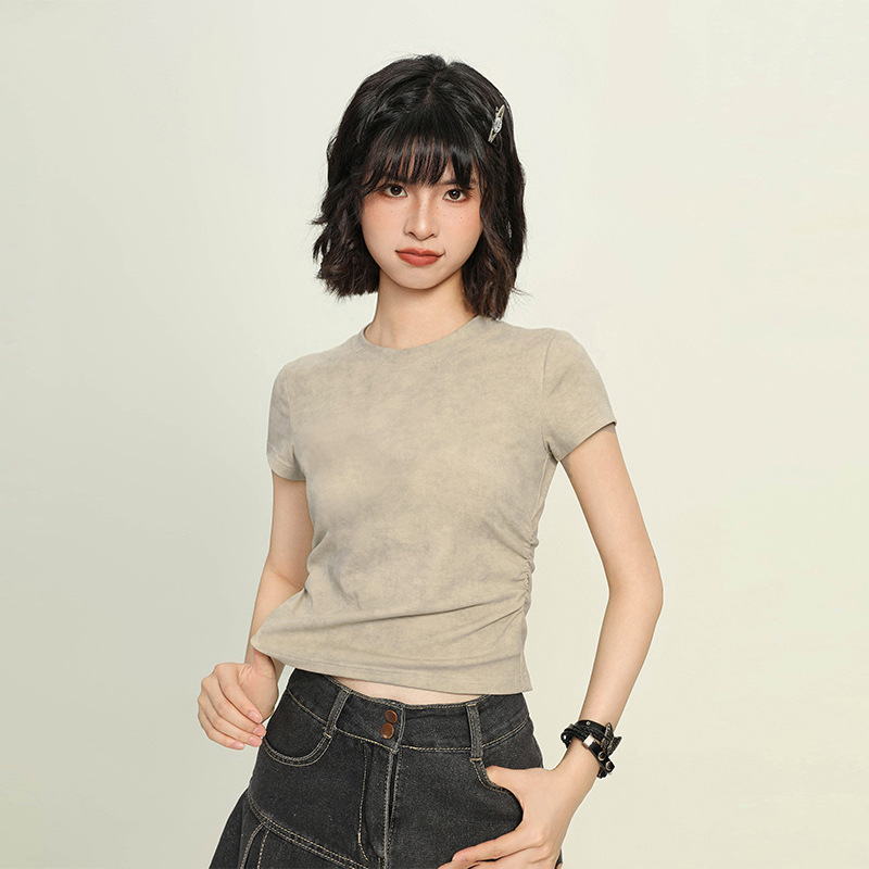 纯棉短袖正肩t恤女夏季小众修身掐腰设计感辣妹收腰短款上衣潮