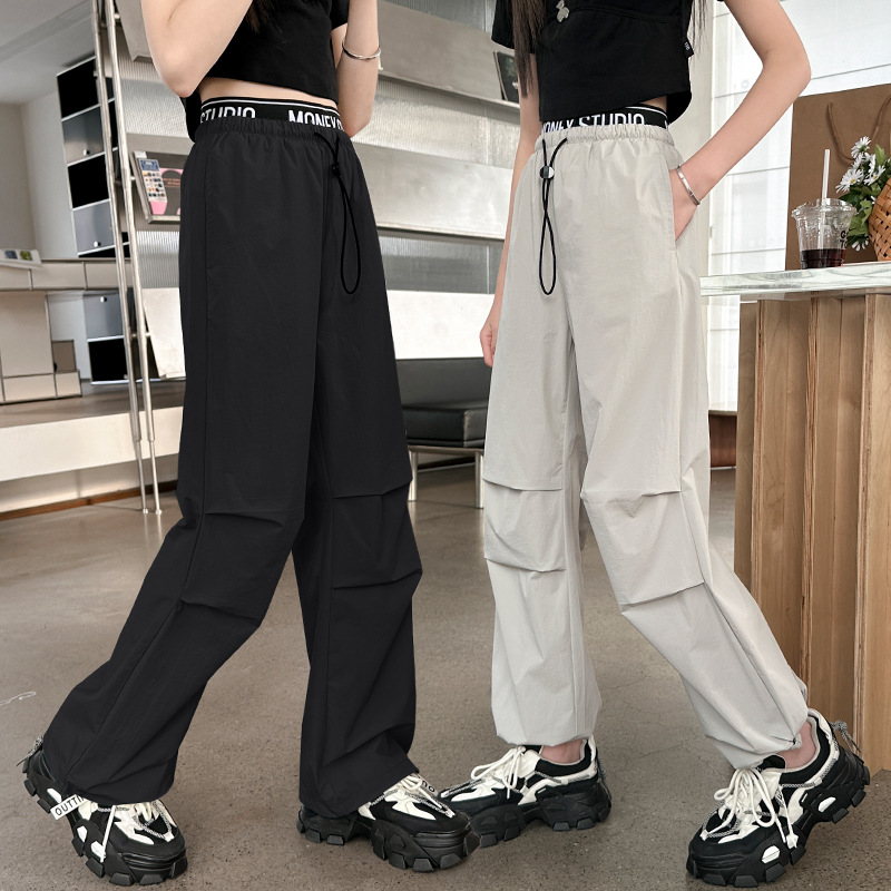 夏季新款速干休闲裤宽松高街工装长裤工装裤辣妹阔腿裤高腰休闲显