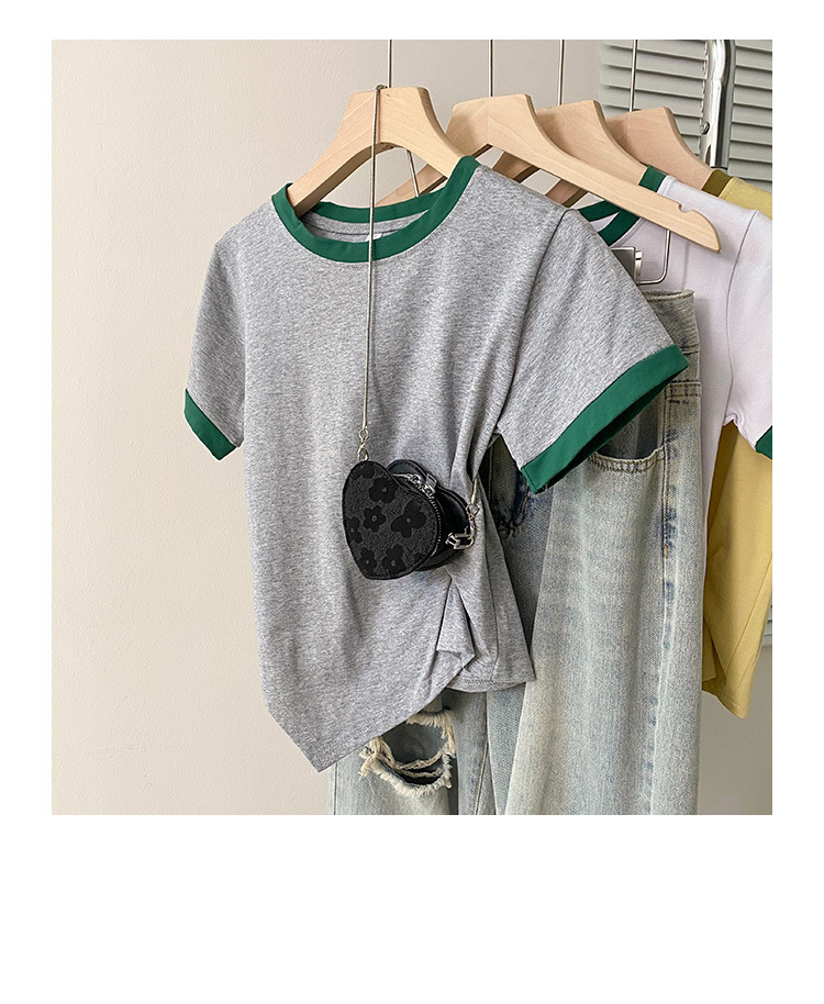 纯棉正肩短袖t恤女夏季掐腰显瘦不规则设计感撞色拼接体恤上衣潮