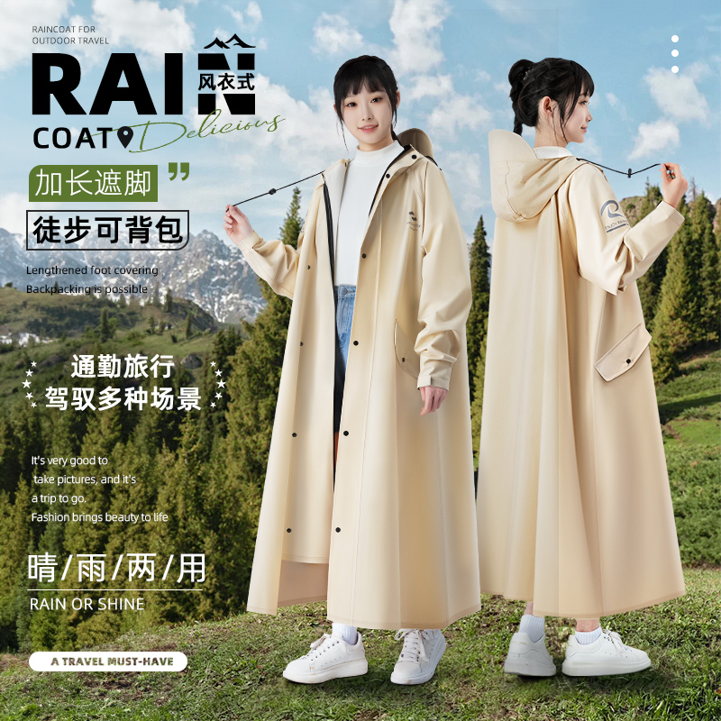 冬风衣式雨衣男女成人外穿电动电瓶车单人长款全身防暴雨户外登山