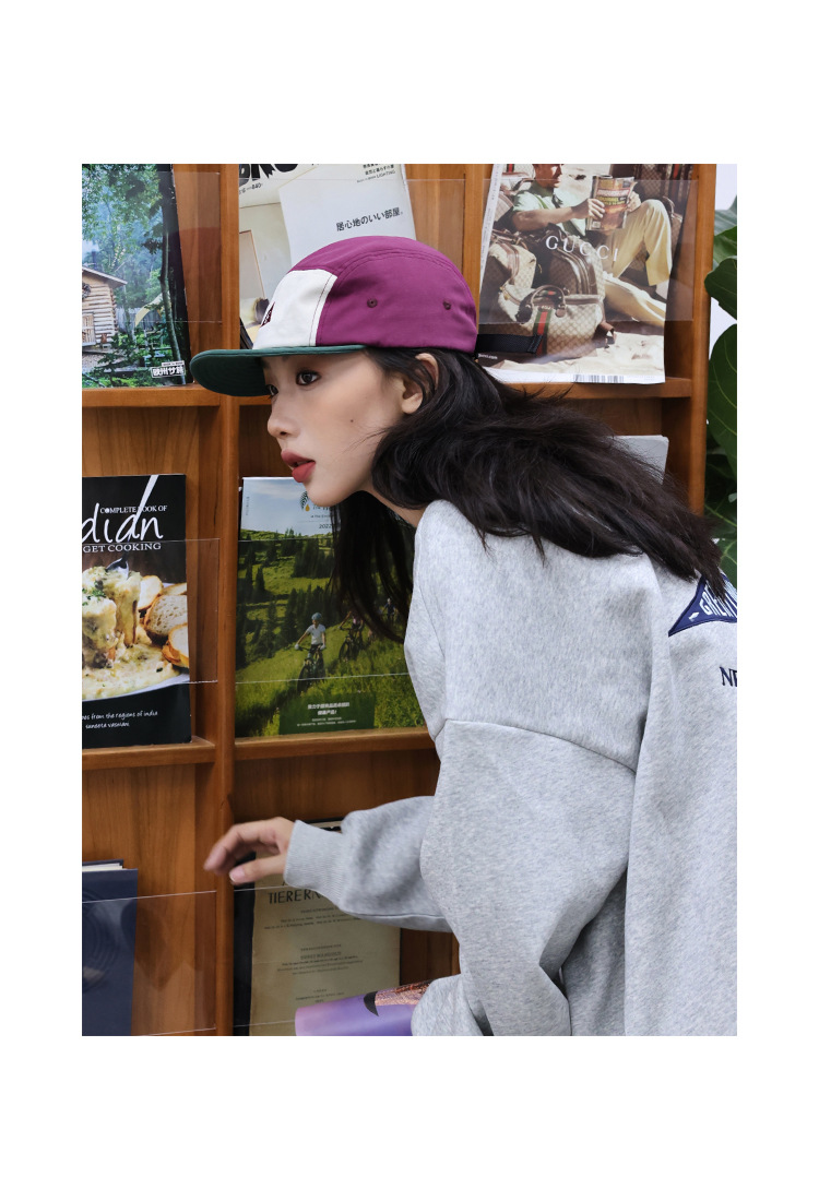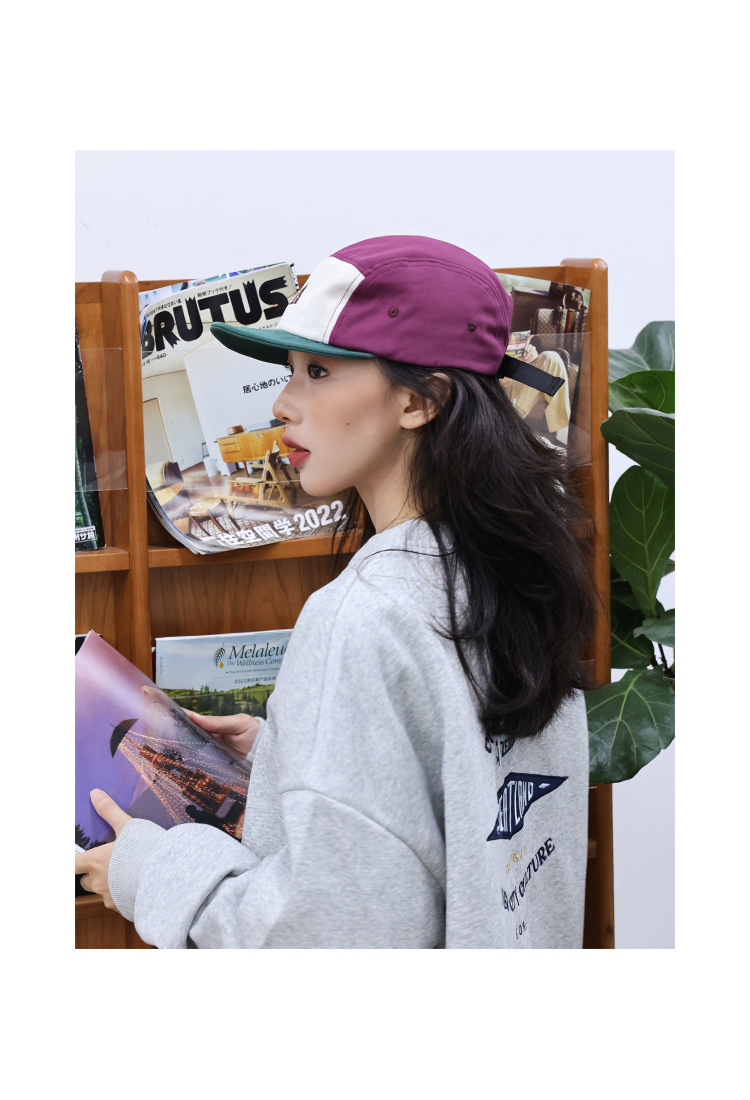 新款日系拼接撞色软帽檐五片帽女软顶鸭舌帽男潮牌拼色营地棒球帽
