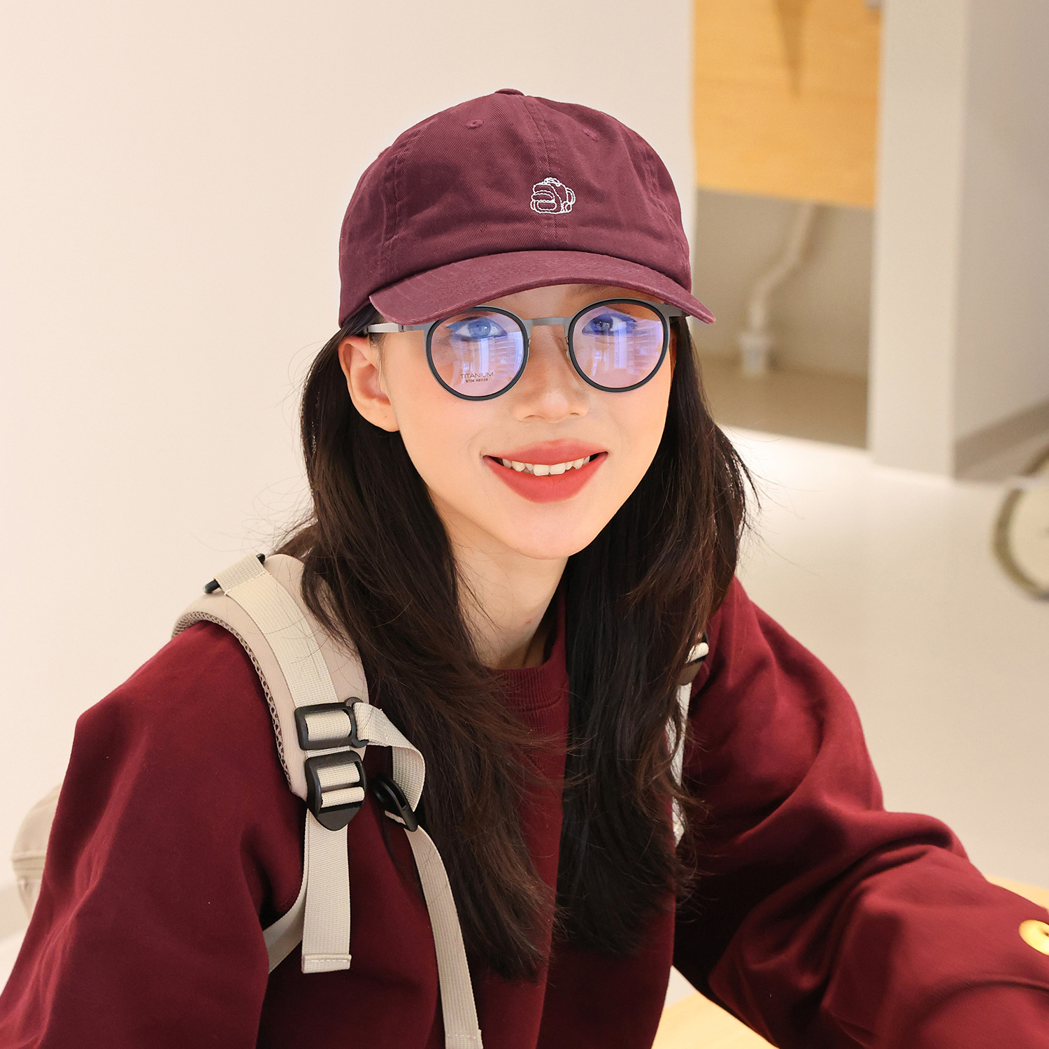 日系刺绣鸭舌帽女春夏休闲简约棒球帽男百搭帽子新款酒红帽子春游
