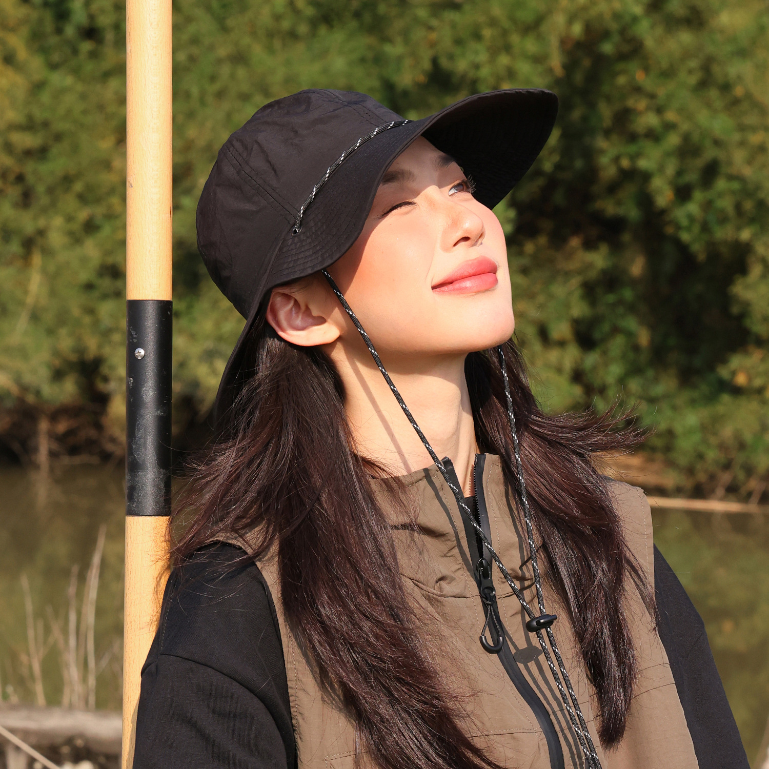 新款夏季防晒速干薄款登山帽女透气户外遮阳渔夫帽超大双帽檐
