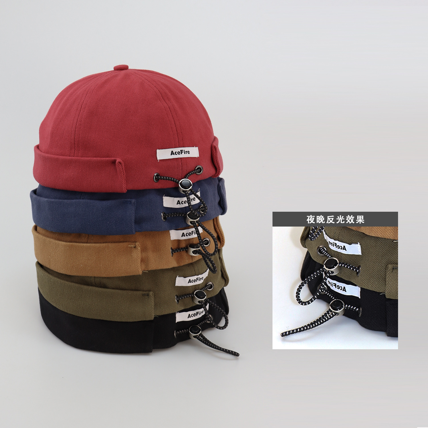 男女圆顶嘻哈雅痞地主帽潮反光抽绳原创潮牌个性无檐瓜皮帽春秋款