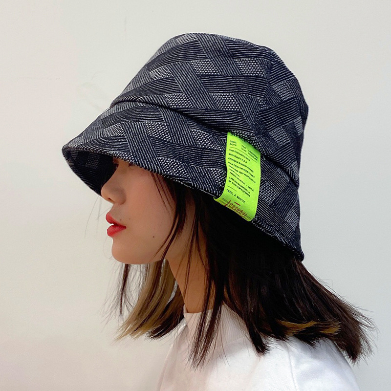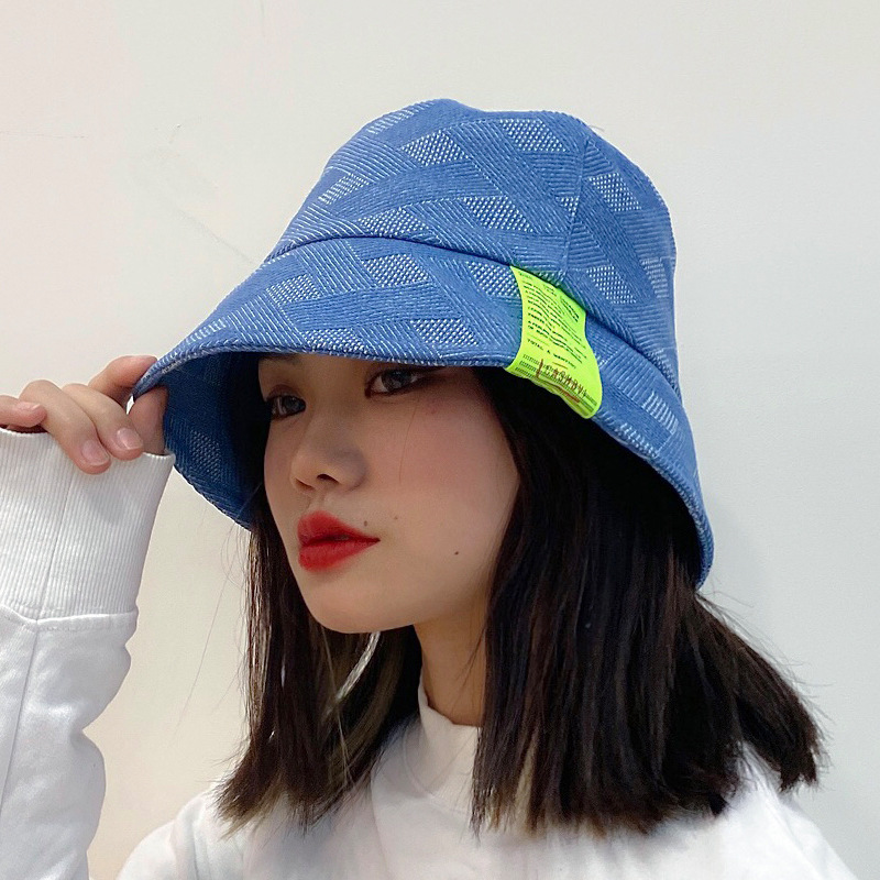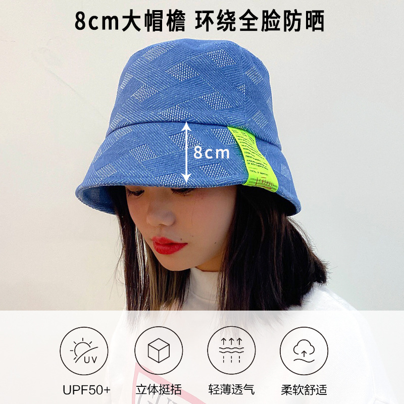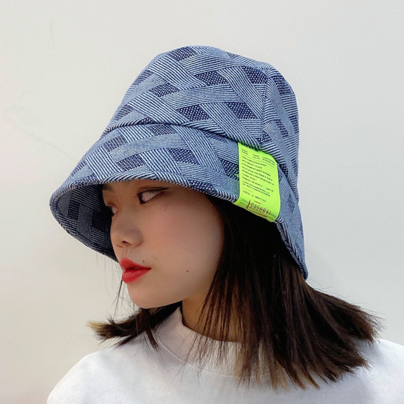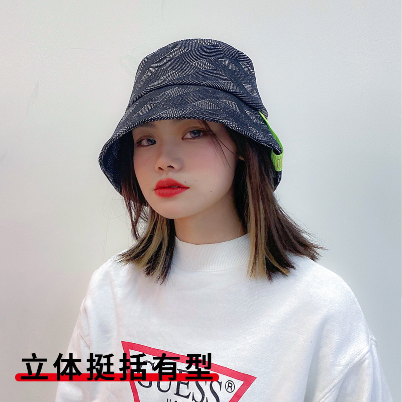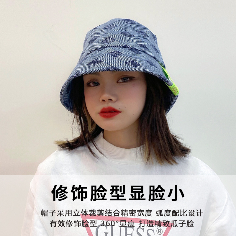 可爱牛仔格子渔夫帽女春秋百搭日系防紫外线帽子青少年遮阳盆帽潮