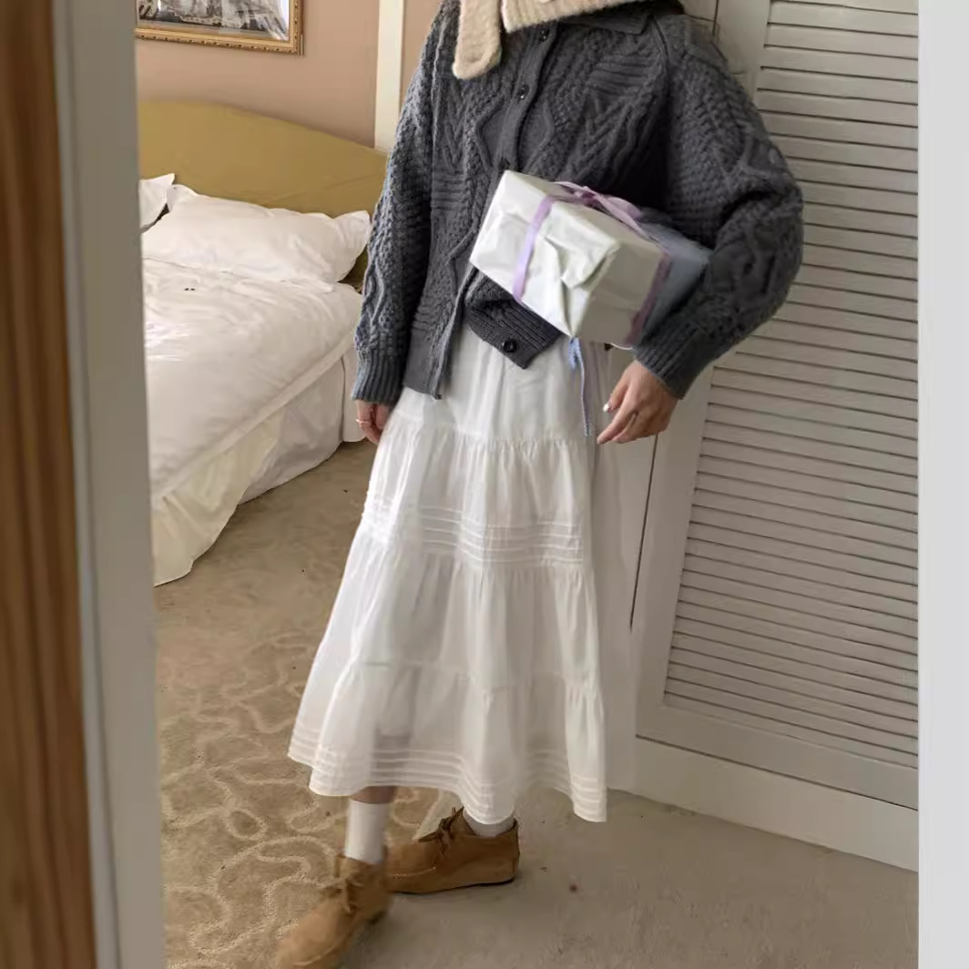 重工浪漫花边伞裙宽松显瘦松紧腰半身裙女春