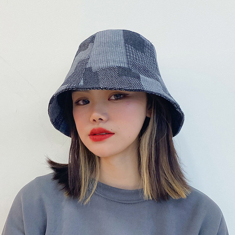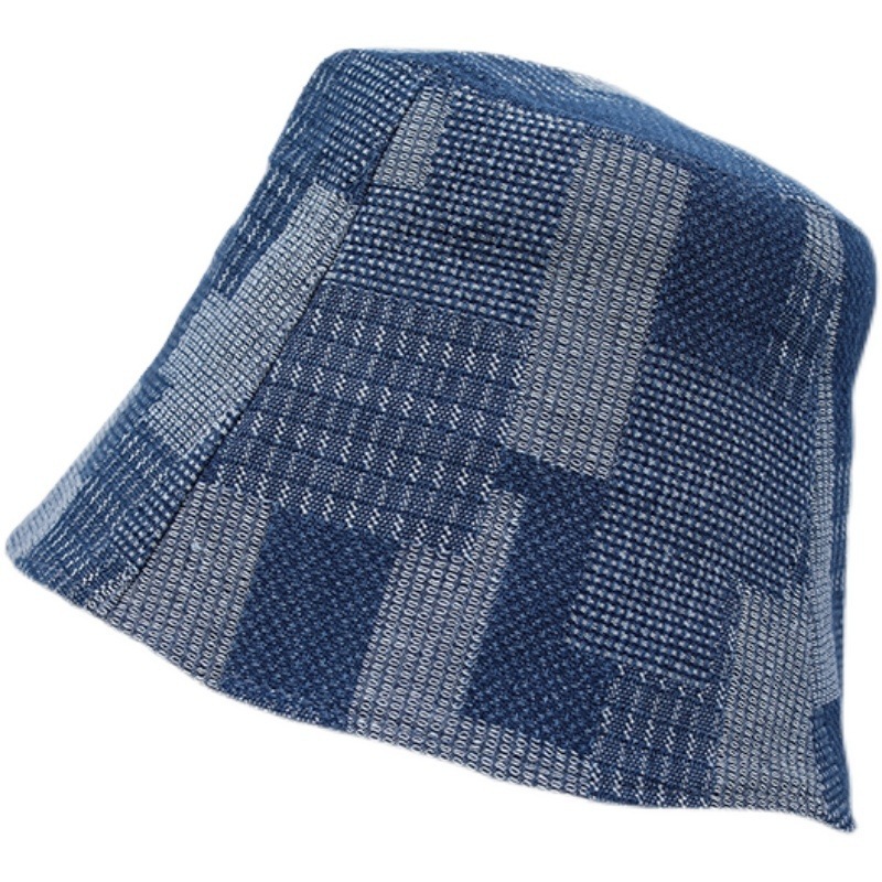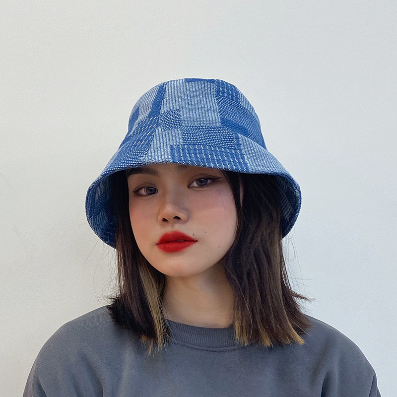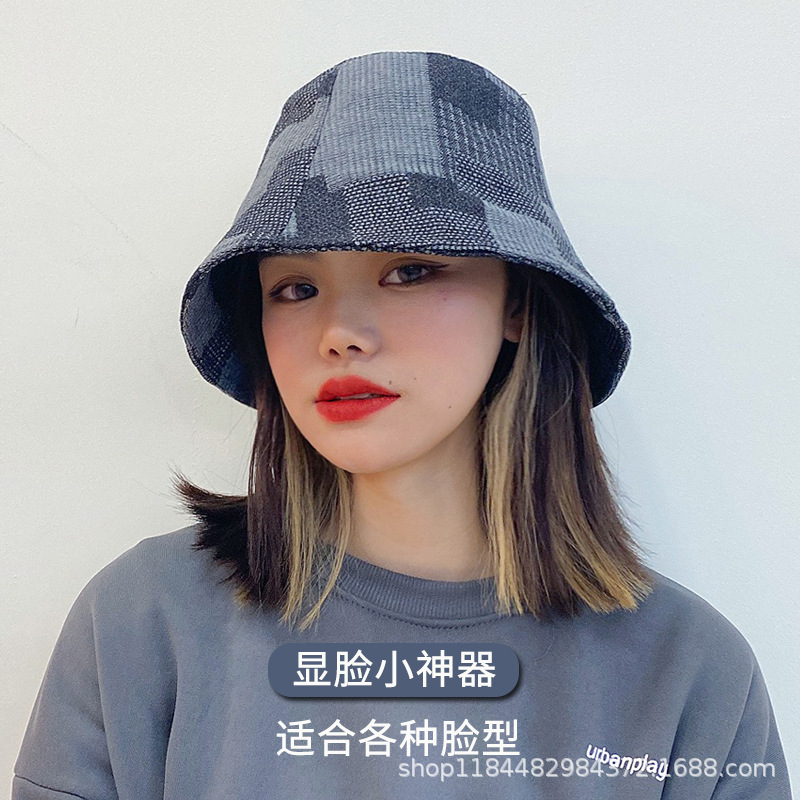 百搭渔夫帽男女简约春秋乞丐水桶帽子牛仔休闲显脸小格子盆帽
