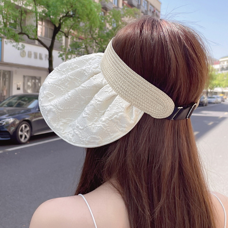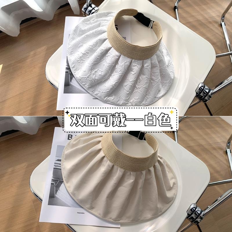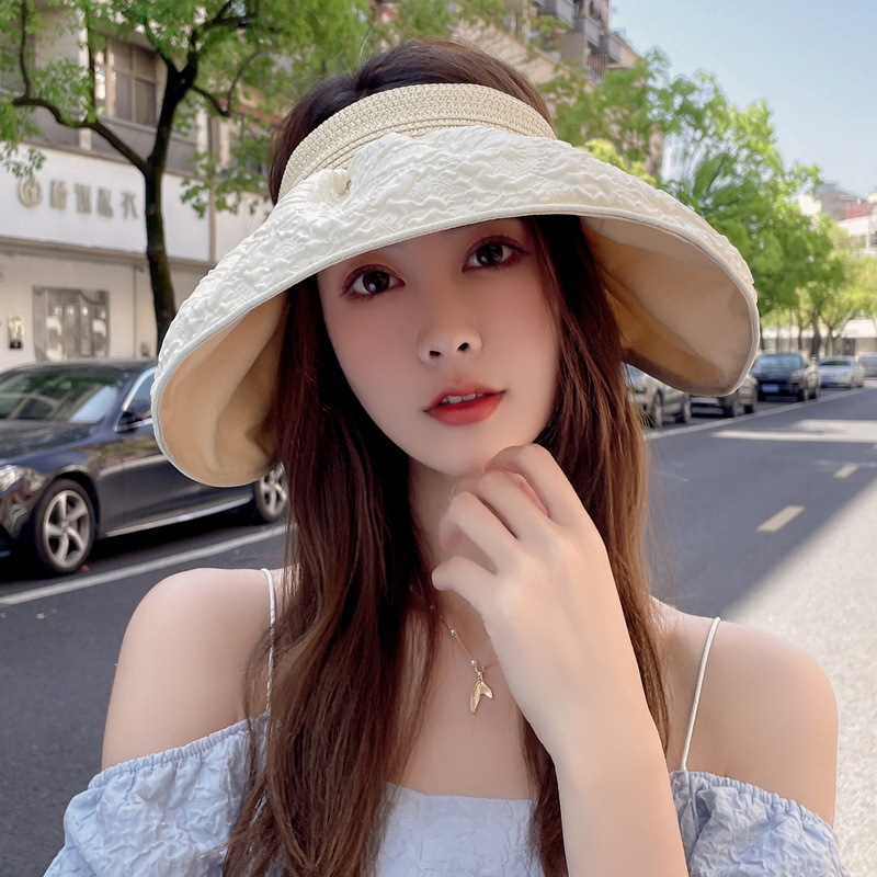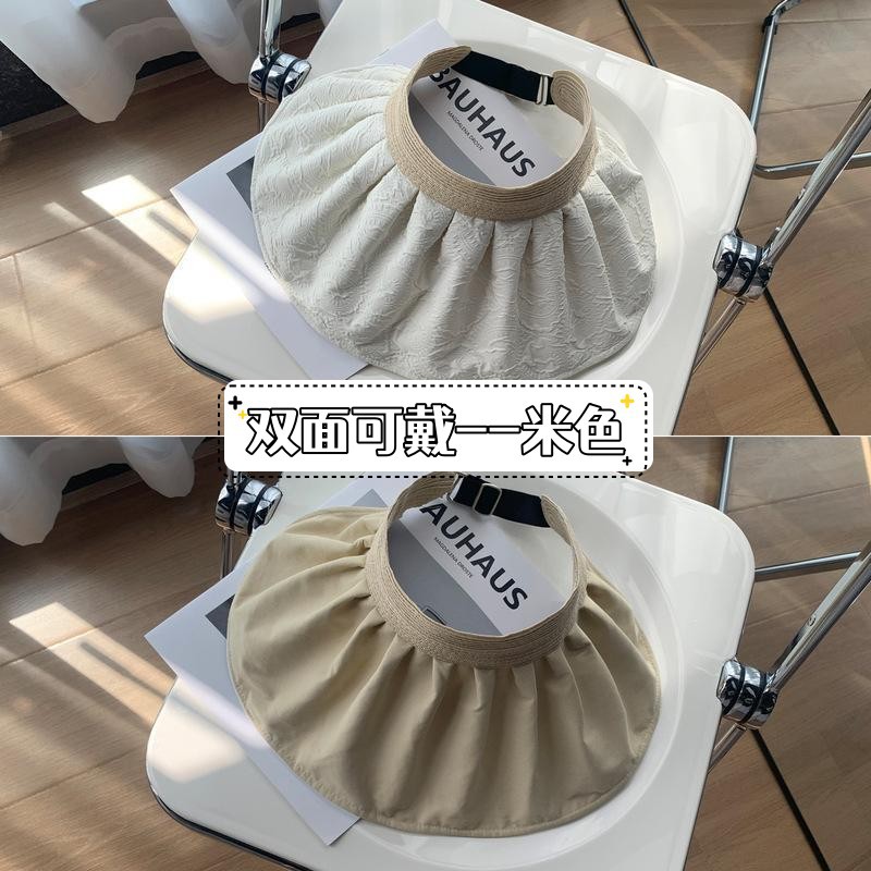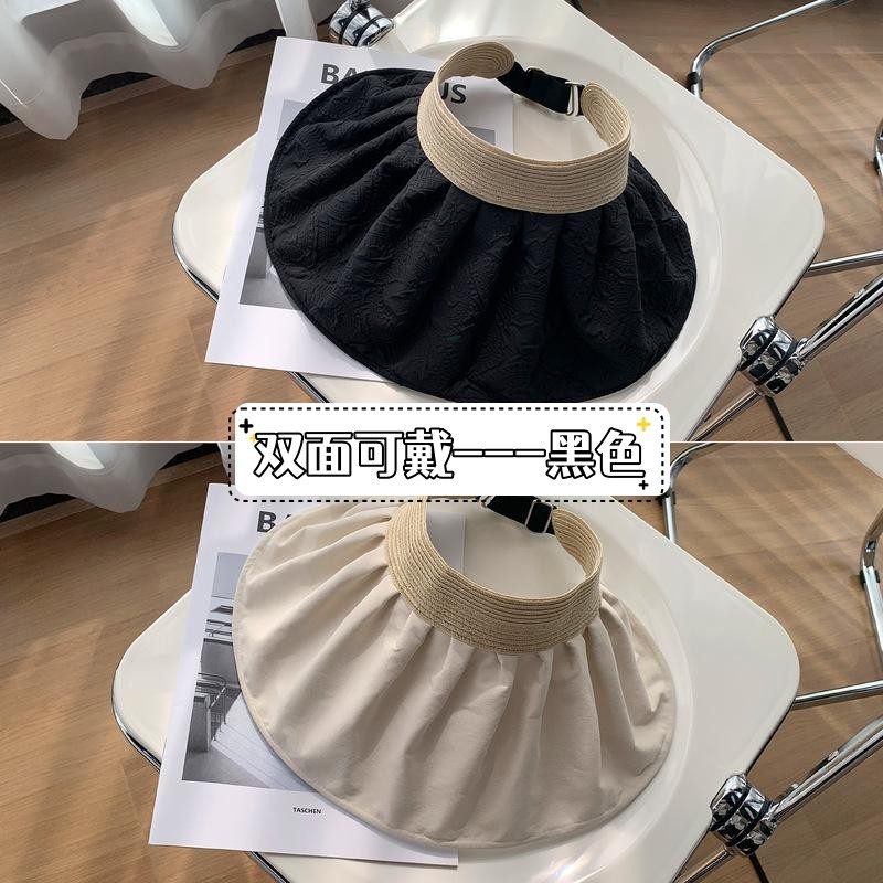 新款夏季帽子女编织空顶帽度假出游海边防晒遮阳帽遮太阳空顶帽