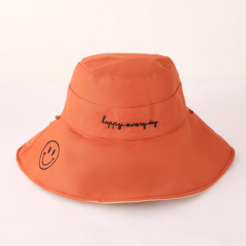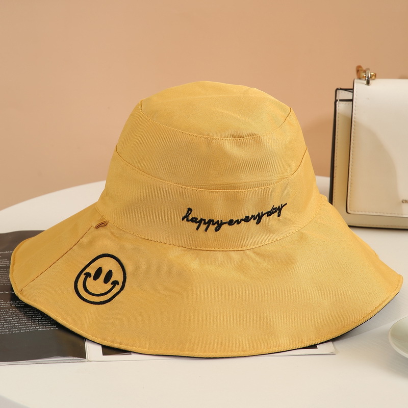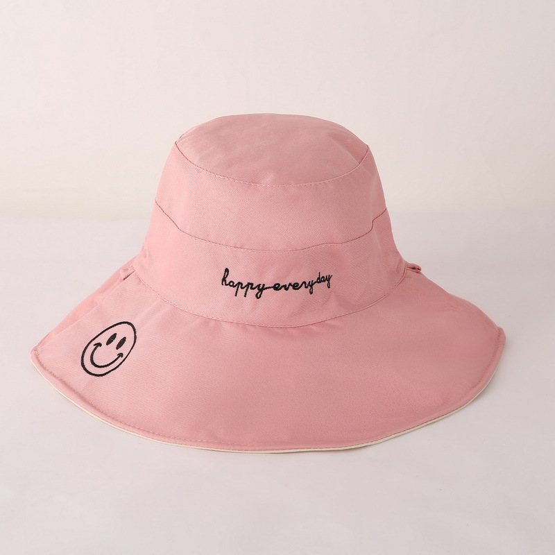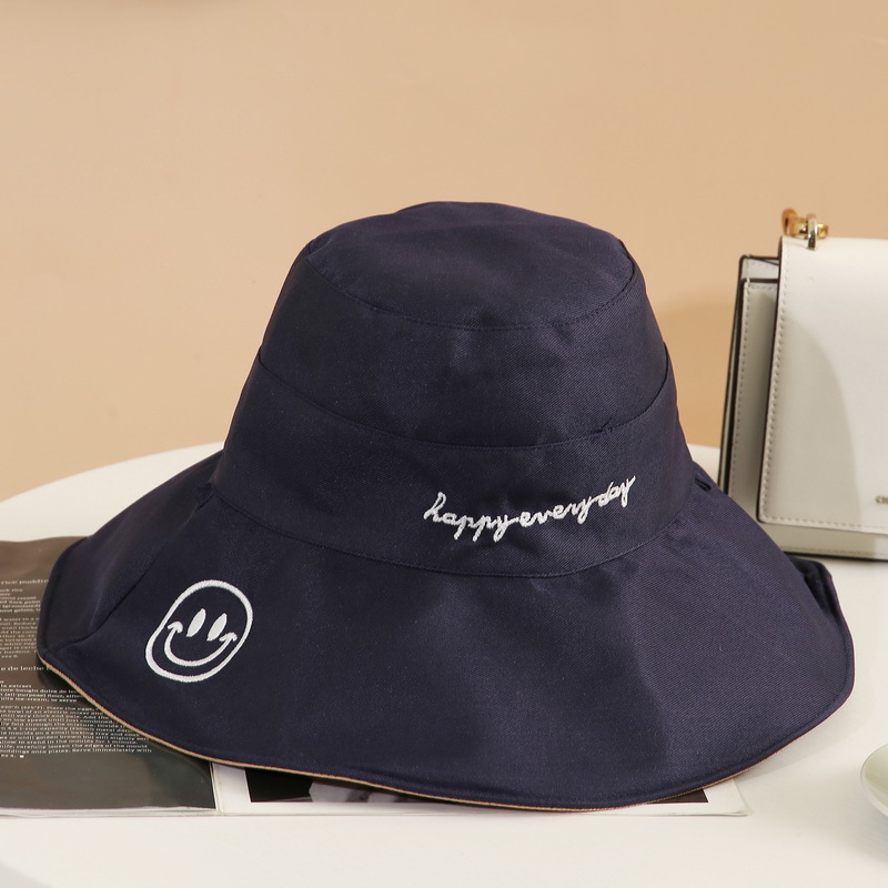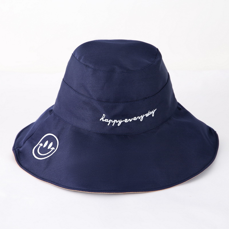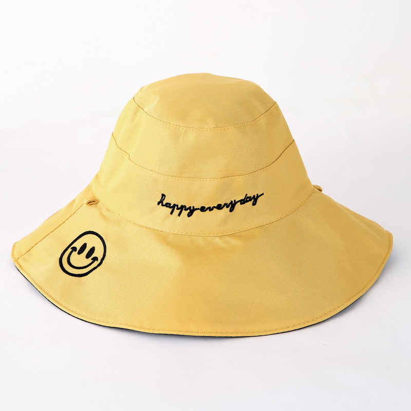 夏季渔夫帽 女士大檐笑脸字母潮流双面太阳帽防晒 遮阳帽可折叠