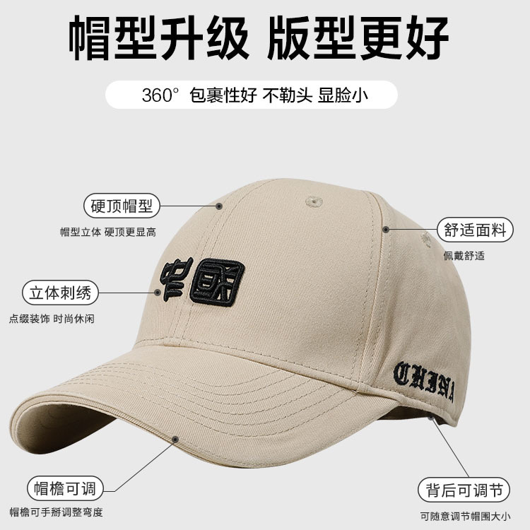 男士帽子新款高端硬顶棒球帽中国刺绣潮牌鸭舌帽春秋款太阳帽