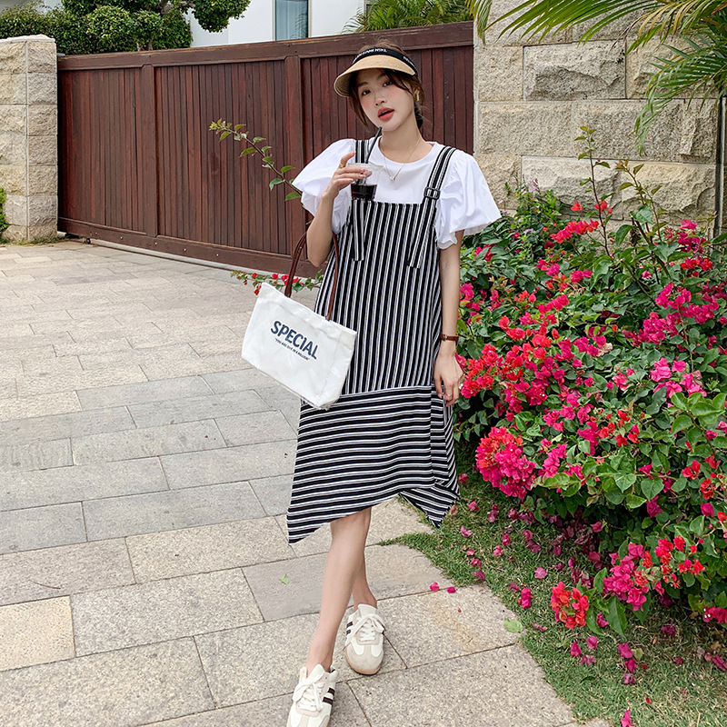 可盐可甜条纹背带裙女新款设计感不规则休闲减龄慵懒风连衣裙