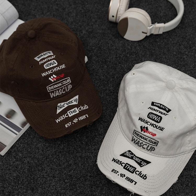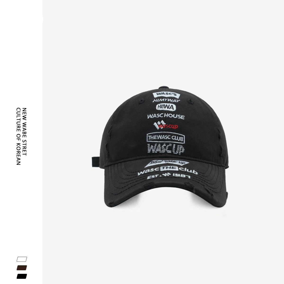 帽子男原创设计潮牌字母重工刺绣棒球帽欧美街头时尚破洞鸭舌帽女