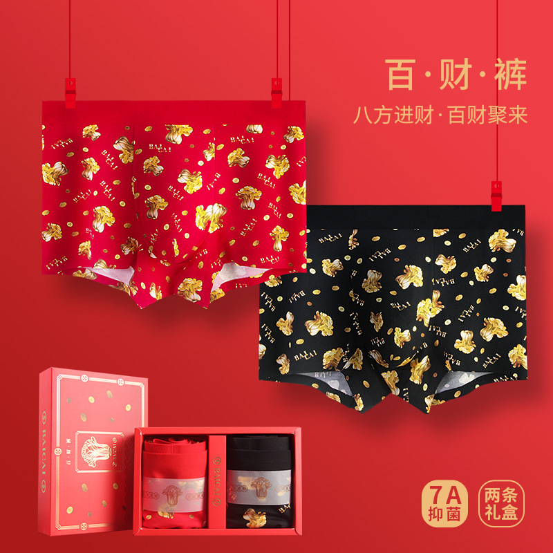 新款本命年红内裤无痕莫代尔男士平角裤男式内裤百财纳福红裤头