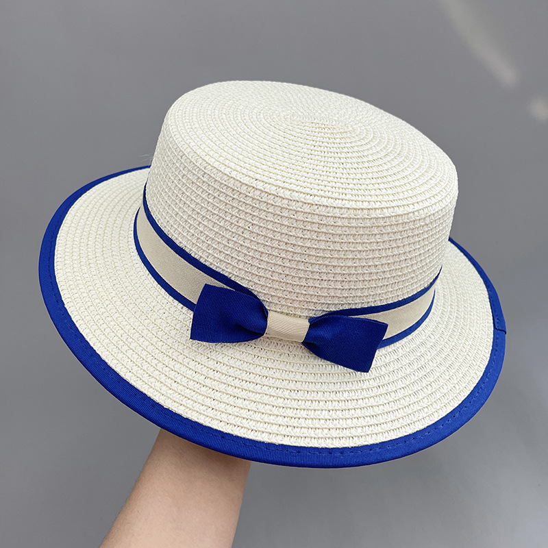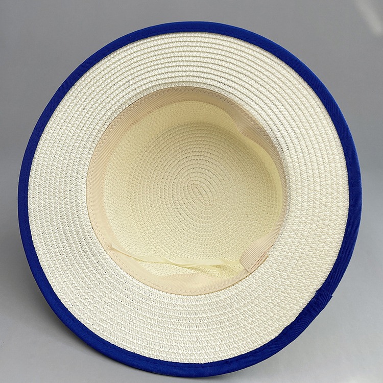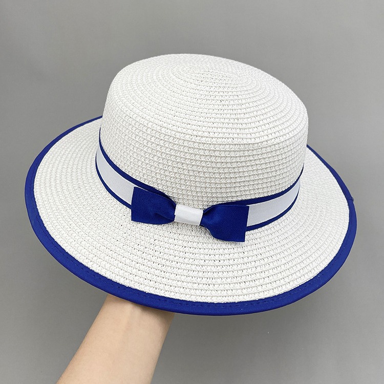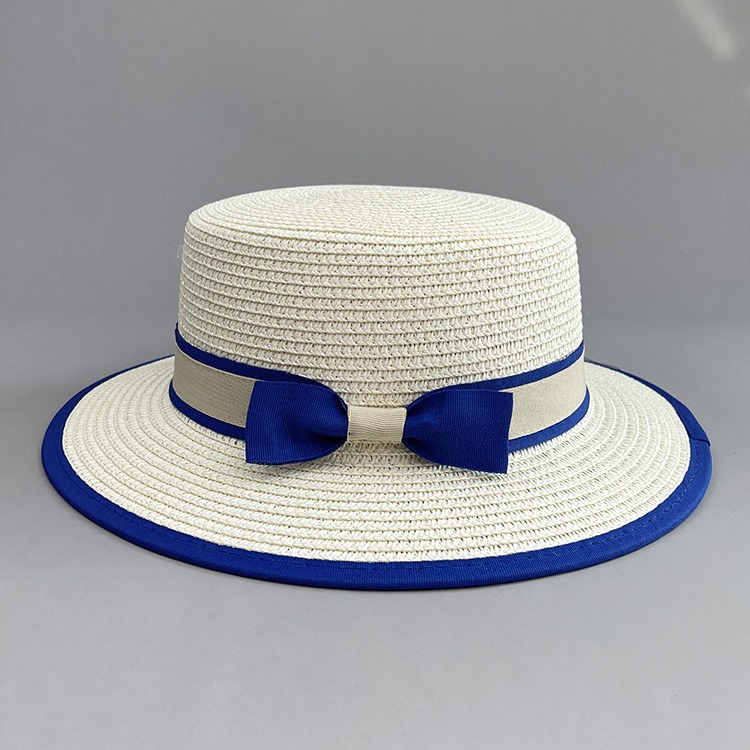 草帽蓝色礼帽遮阳帽海边白色帽子女款太阳帽女士夏凉帽防晒帽法式