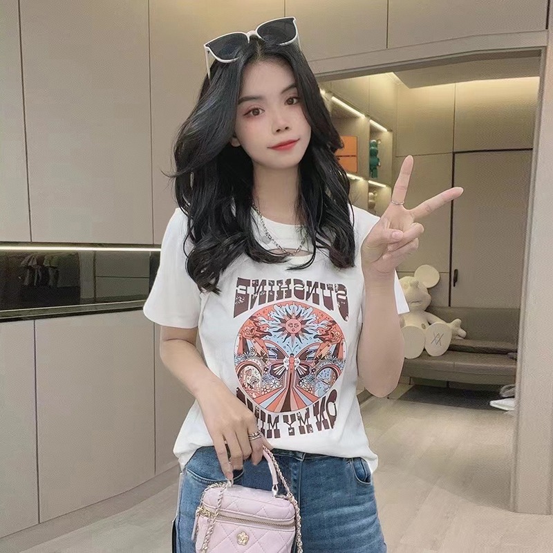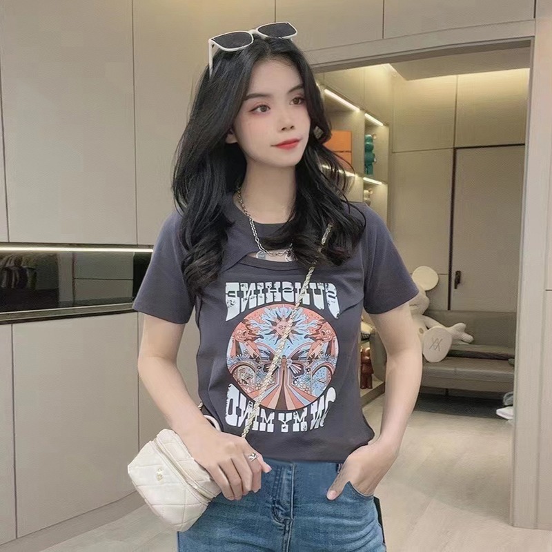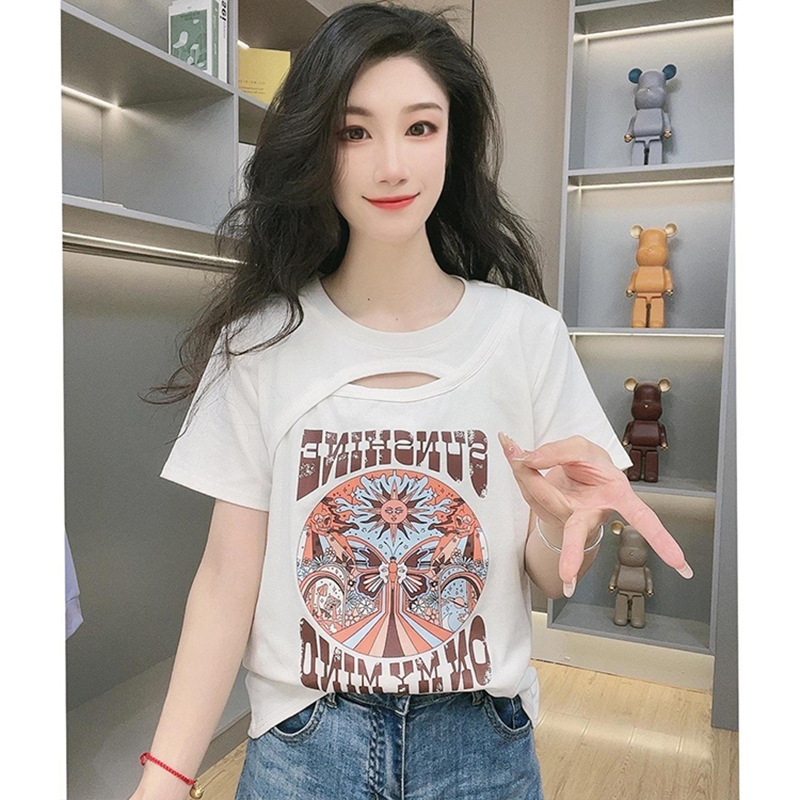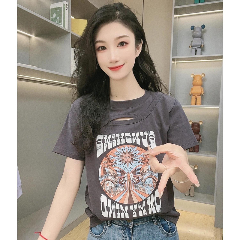 夏季简约小众个性创意印花正肩纯棉短袖T恤新款宽松百搭上衣