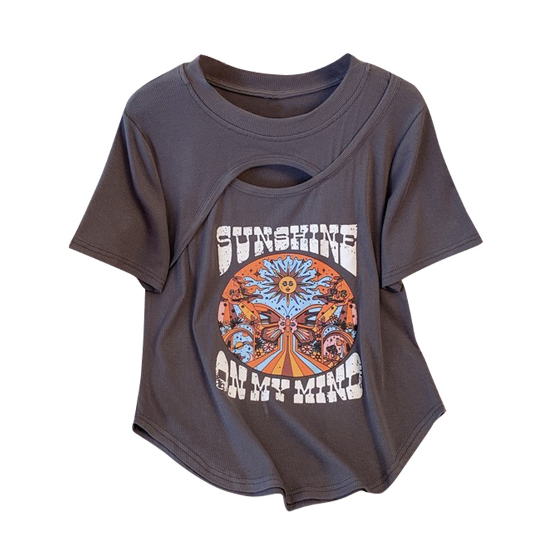 美式正肩短袖T恤女夏季新款设计感小众宽松镂空显瘦纯棉体桖上衣