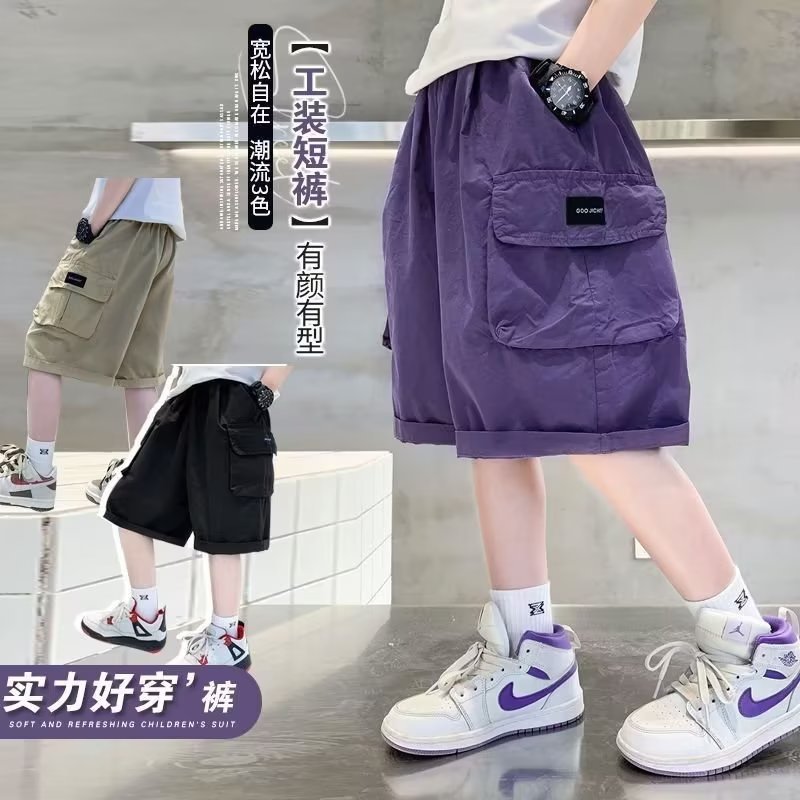男童工装短裤夏季薄款潮儿童夏装男孩休闲裤中裤中大童裤子五分裤
