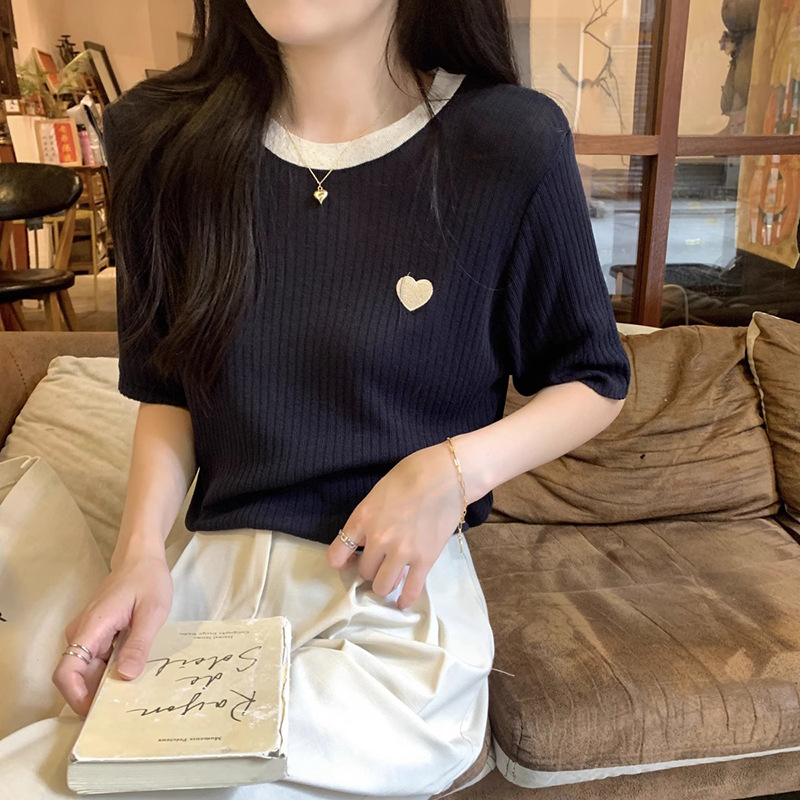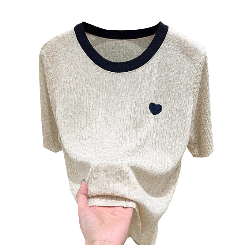 正肩冰丝针织衫短袖t恤女夏季薄款新款设计感小众宽松上衣ins