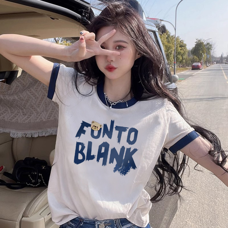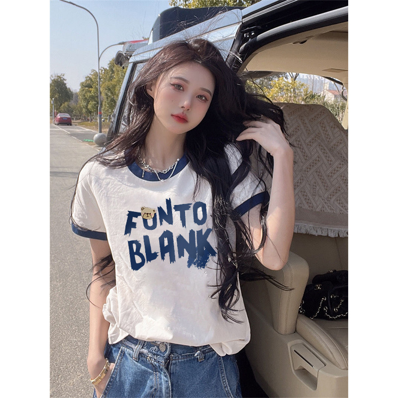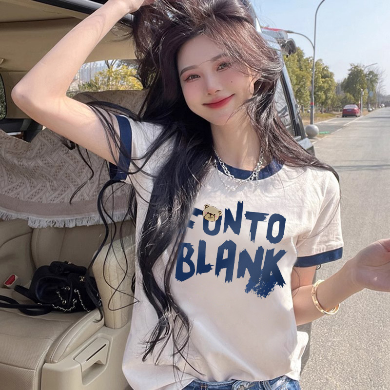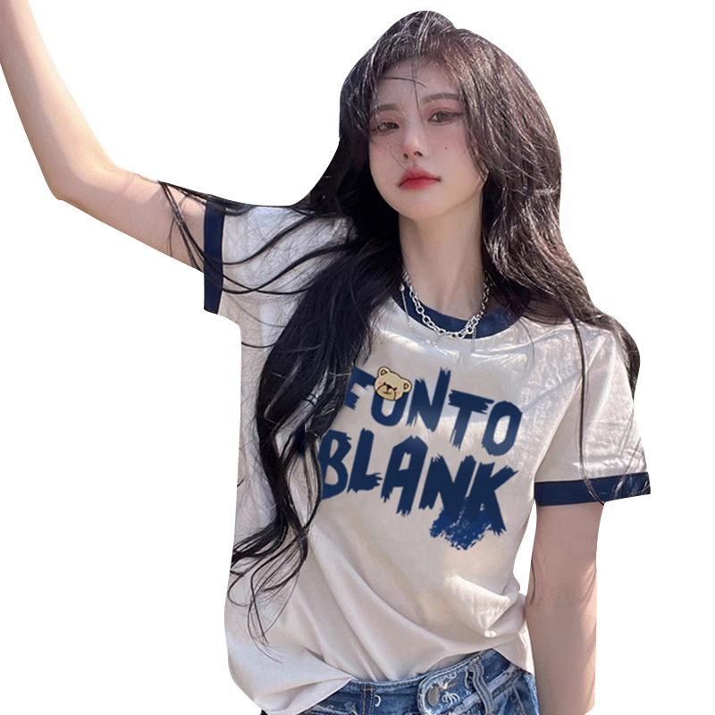 短袖t恤女夏季宽松设计感小众半袖正肩中长款半袖纯棉撞色上衣潮