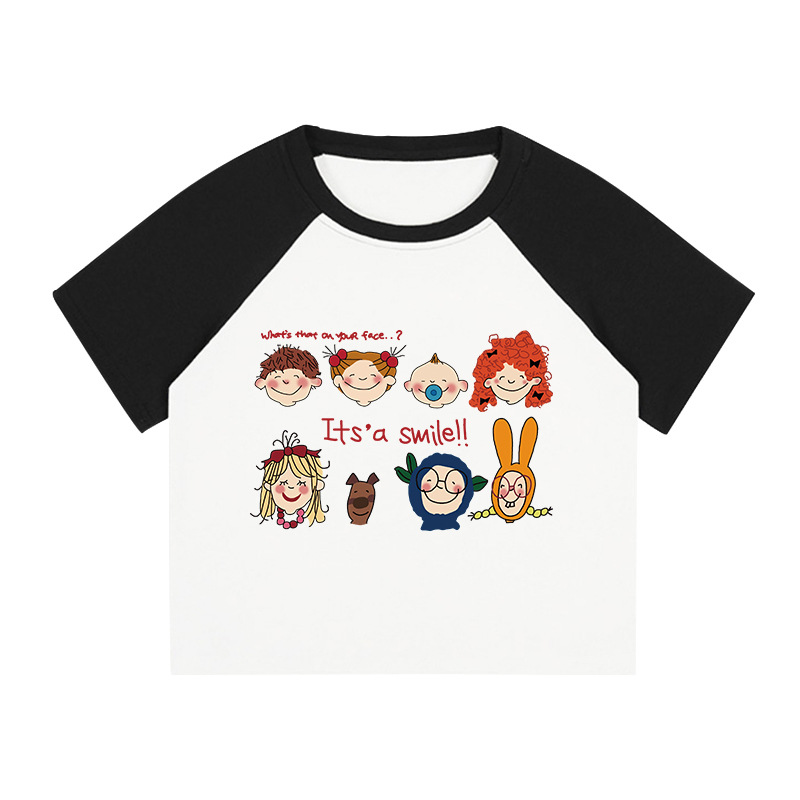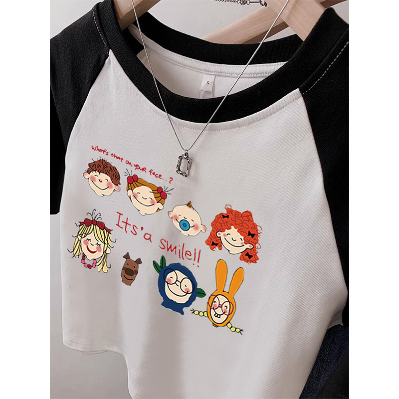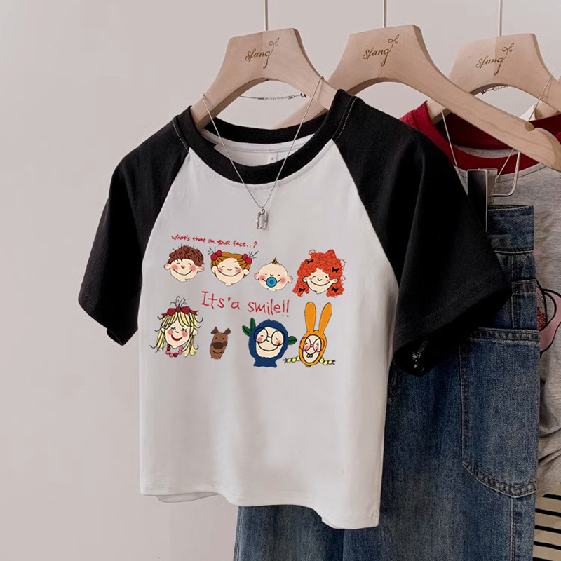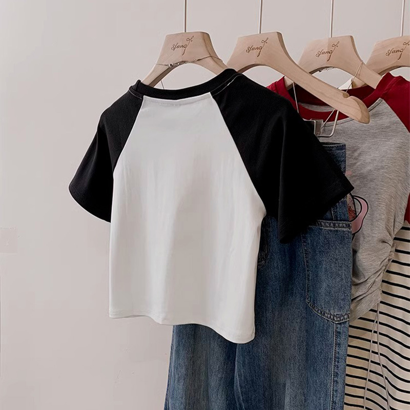 纯棉短袖t恤女夏季小个子多巴胺穿搭设计感小众辣妹正肩短款上衣