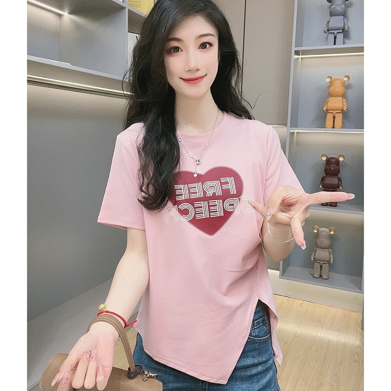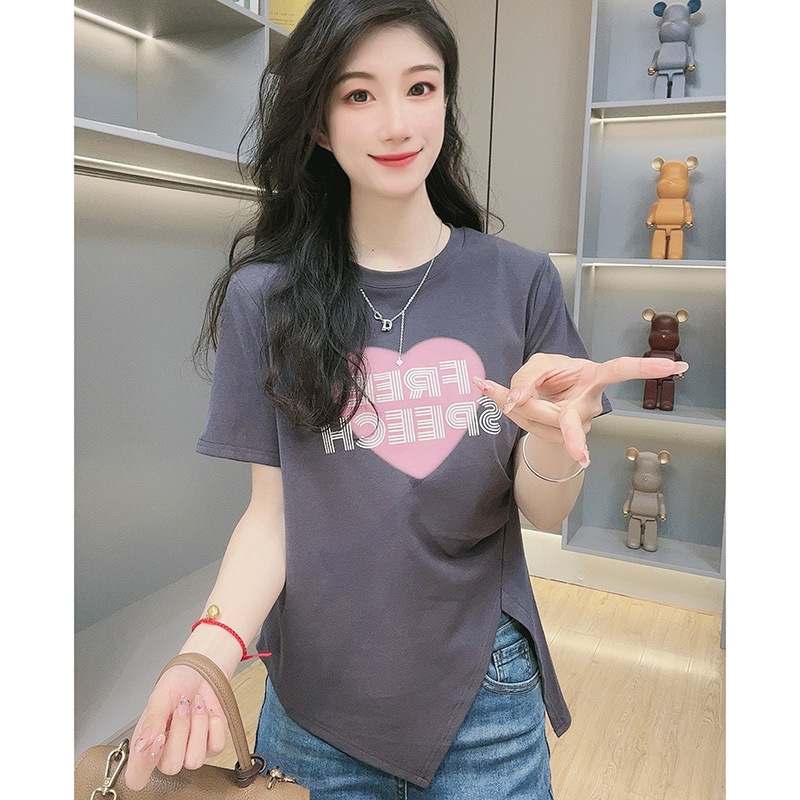 正肩短袖T恤女装夏季新款褶皱不规则设计感小众开叉纯棉体桖上衣