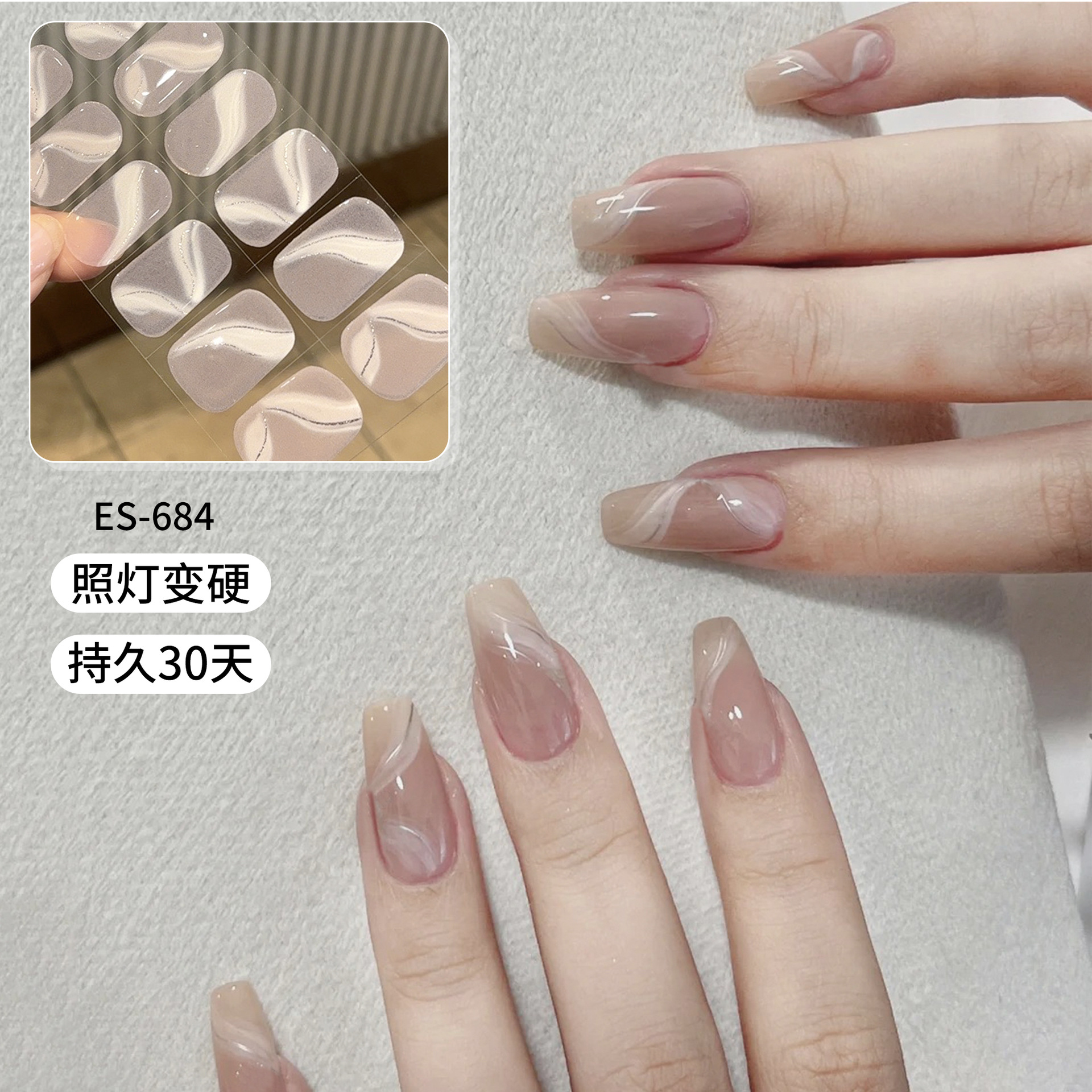 【ES684】20指半固化凝胶uv半烤美甲贴指甲贴片照灯变硬