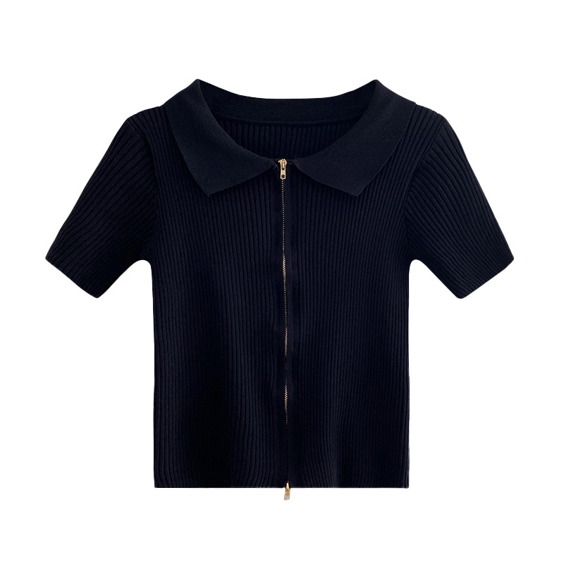 双拉链针织衫开衫薄款外套短款修身t恤女夏季bm短袖冰丝上衣ins潮