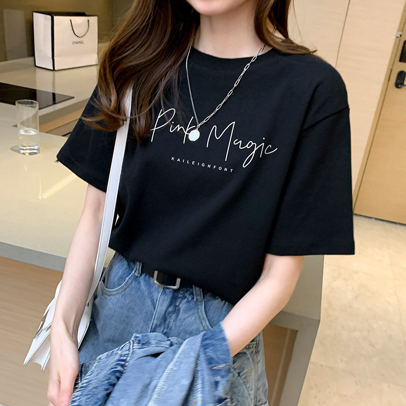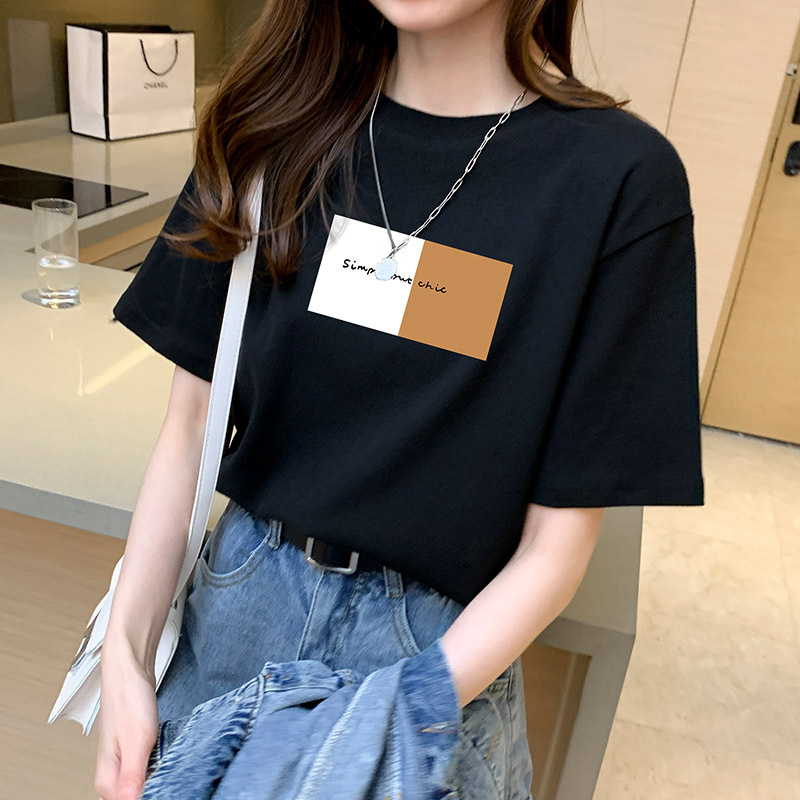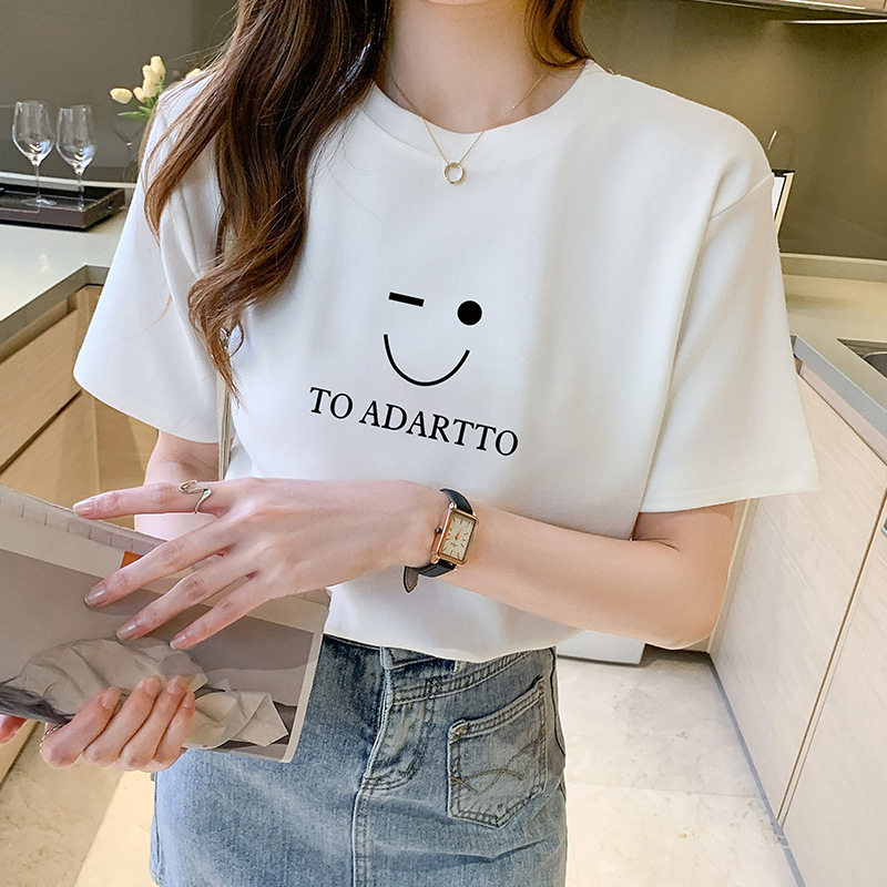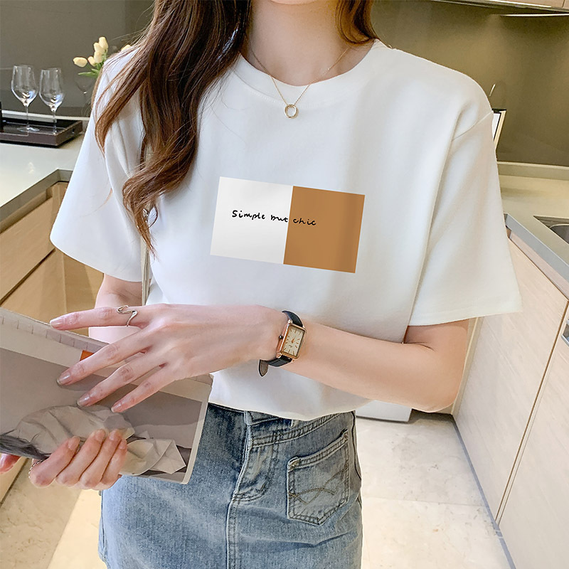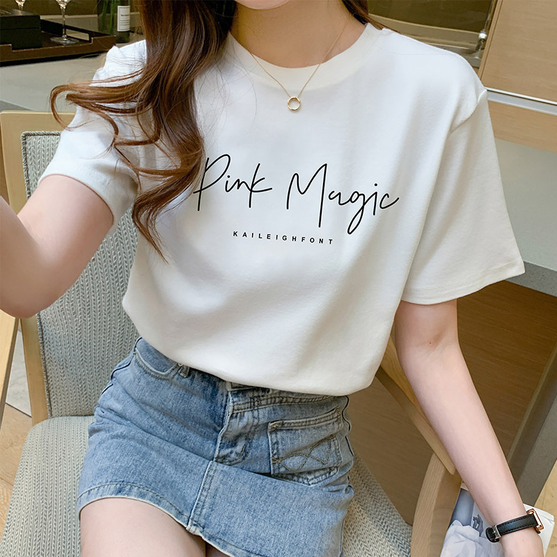 白色短袖t恤女装年新款夏季宽松韩版圆领半袖大码设计感上衣