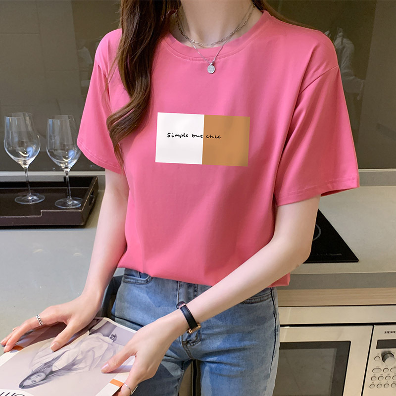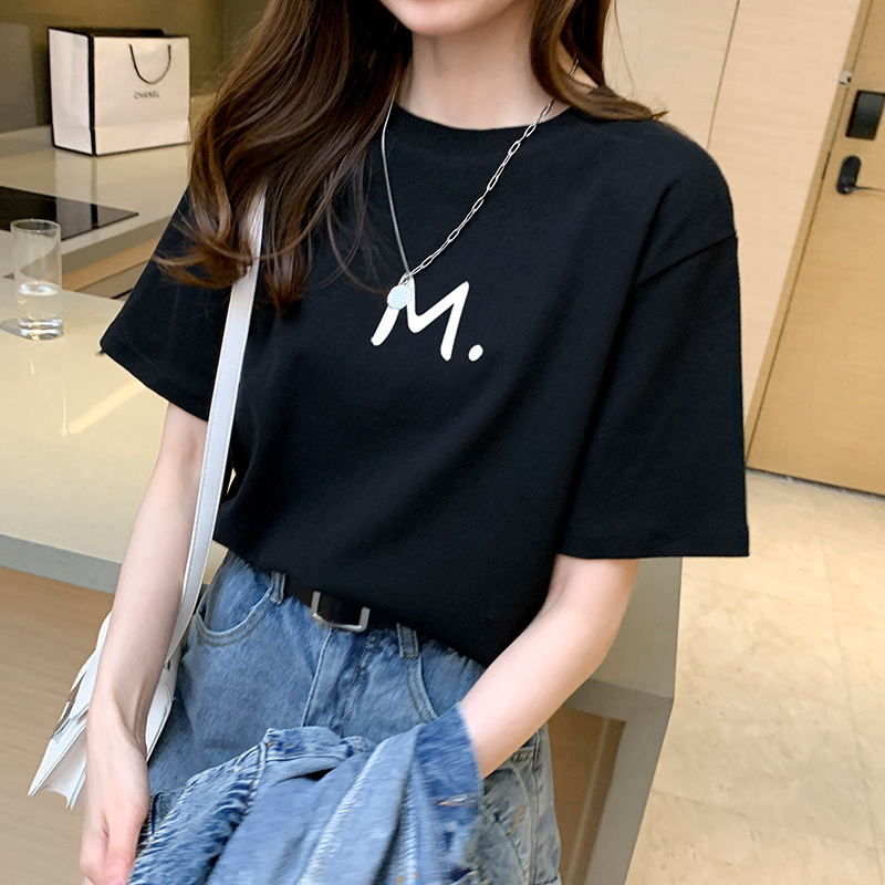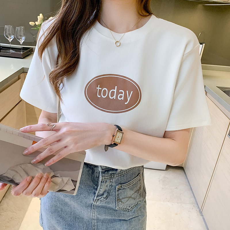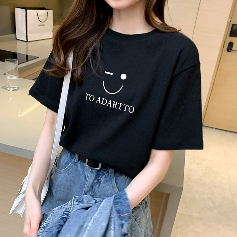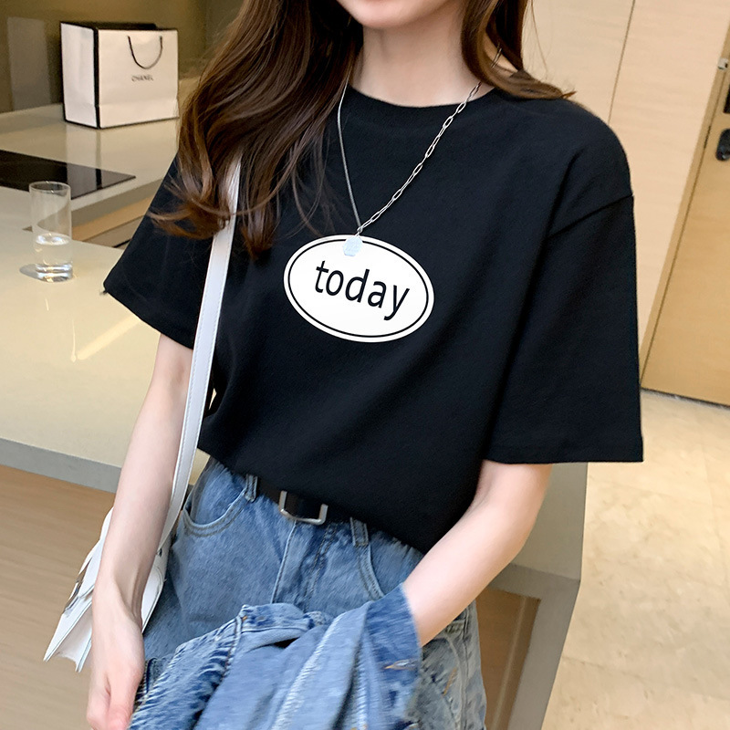 白色短袖t恤女装年新款夏季宽松韩版圆领半袖大码设计感上衣
