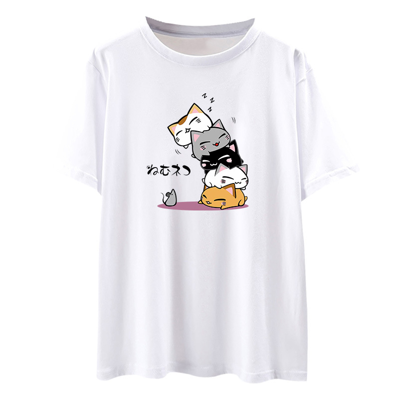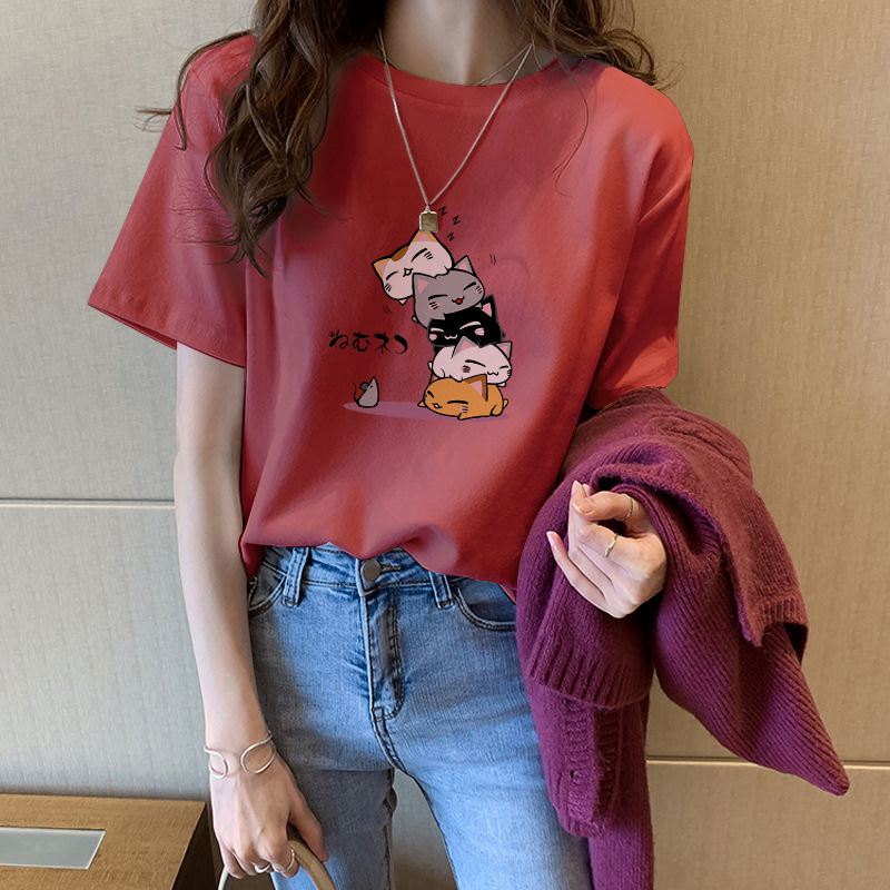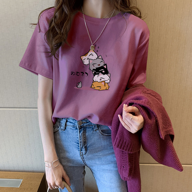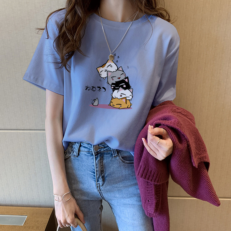 新款夏季纯棉短袖t恤女宽松卡通印花半袖体恤衫原宿风上衣服