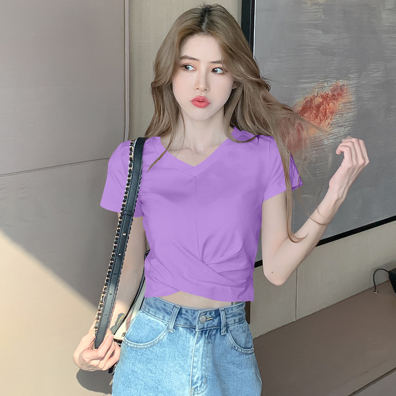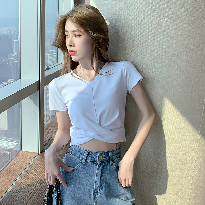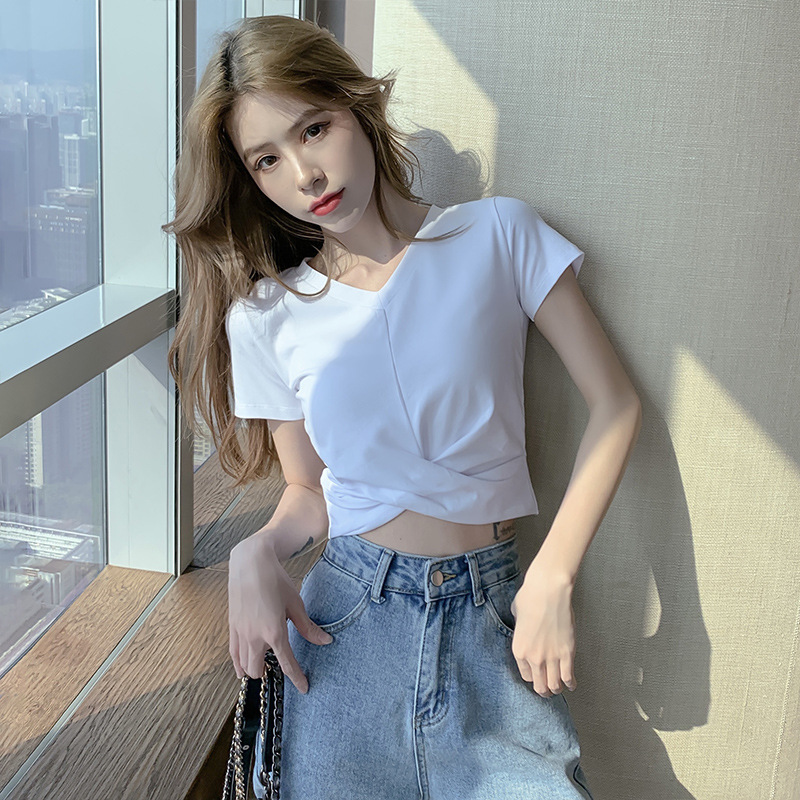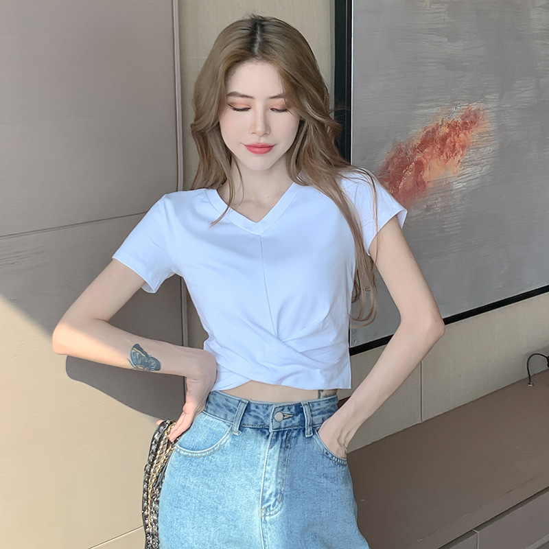 纯棉T恤女短袖夏季新款设计感小众修身显瘦辣妹露脐短款上衣