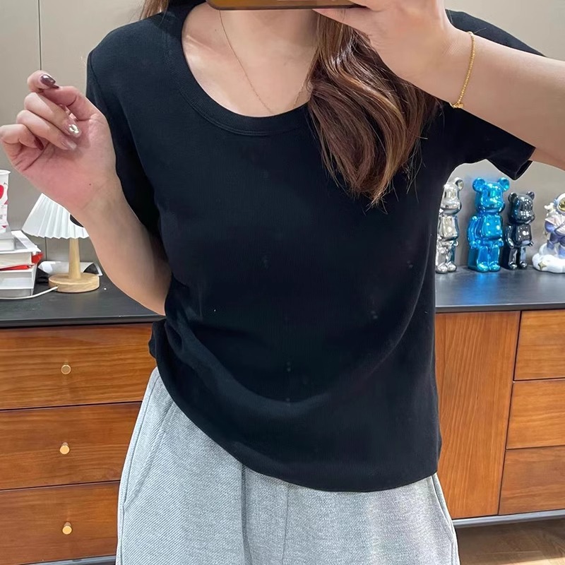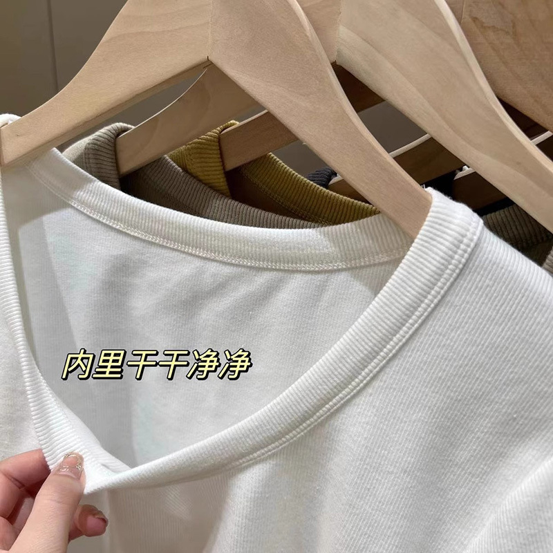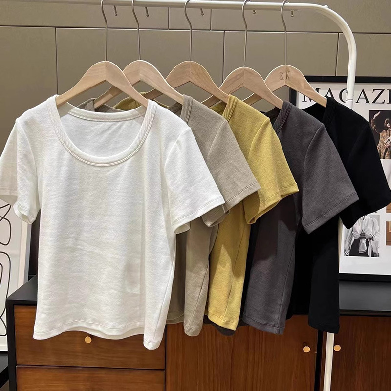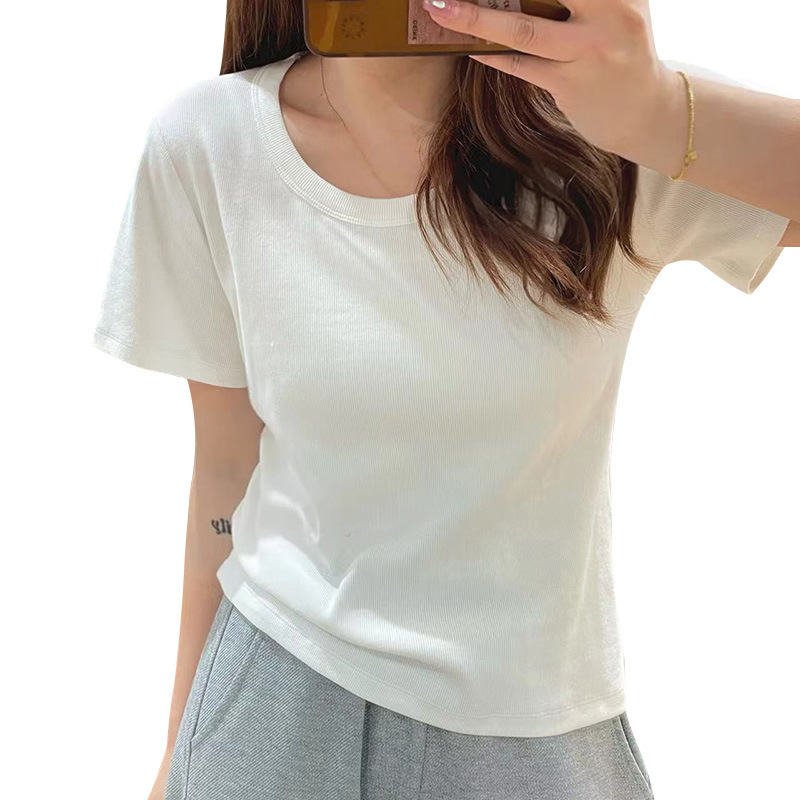 圆领白色T恤女短袖夏季新款修身显瘦锁骨打底别致上衣体桖潮