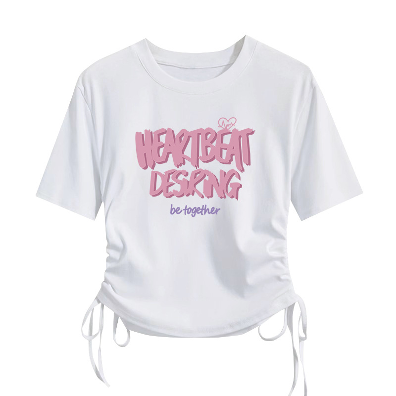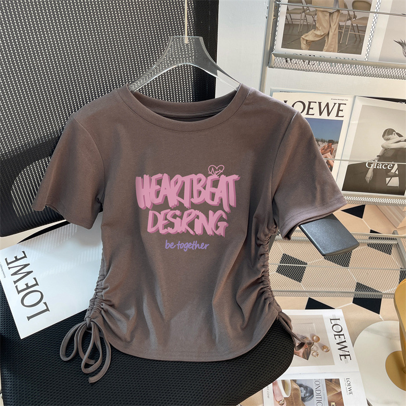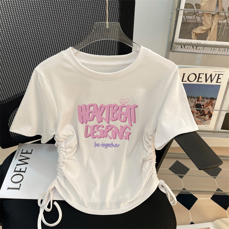 纯棉T恤女短袖修身短款甜辣夏季新款抽绳收腰体桖美式上衣潮