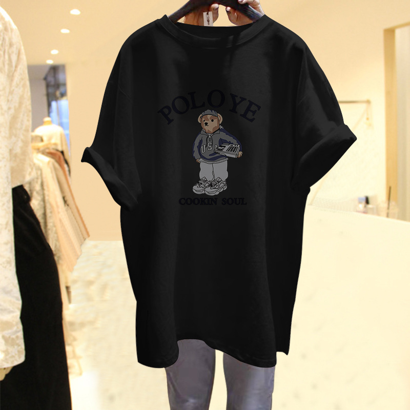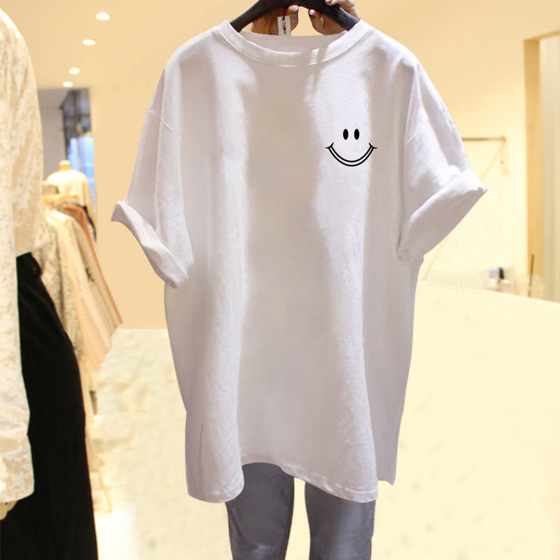 100纯棉中长款短袖t恤女宽松韩版年新款夏季圆领印花半袖上衣