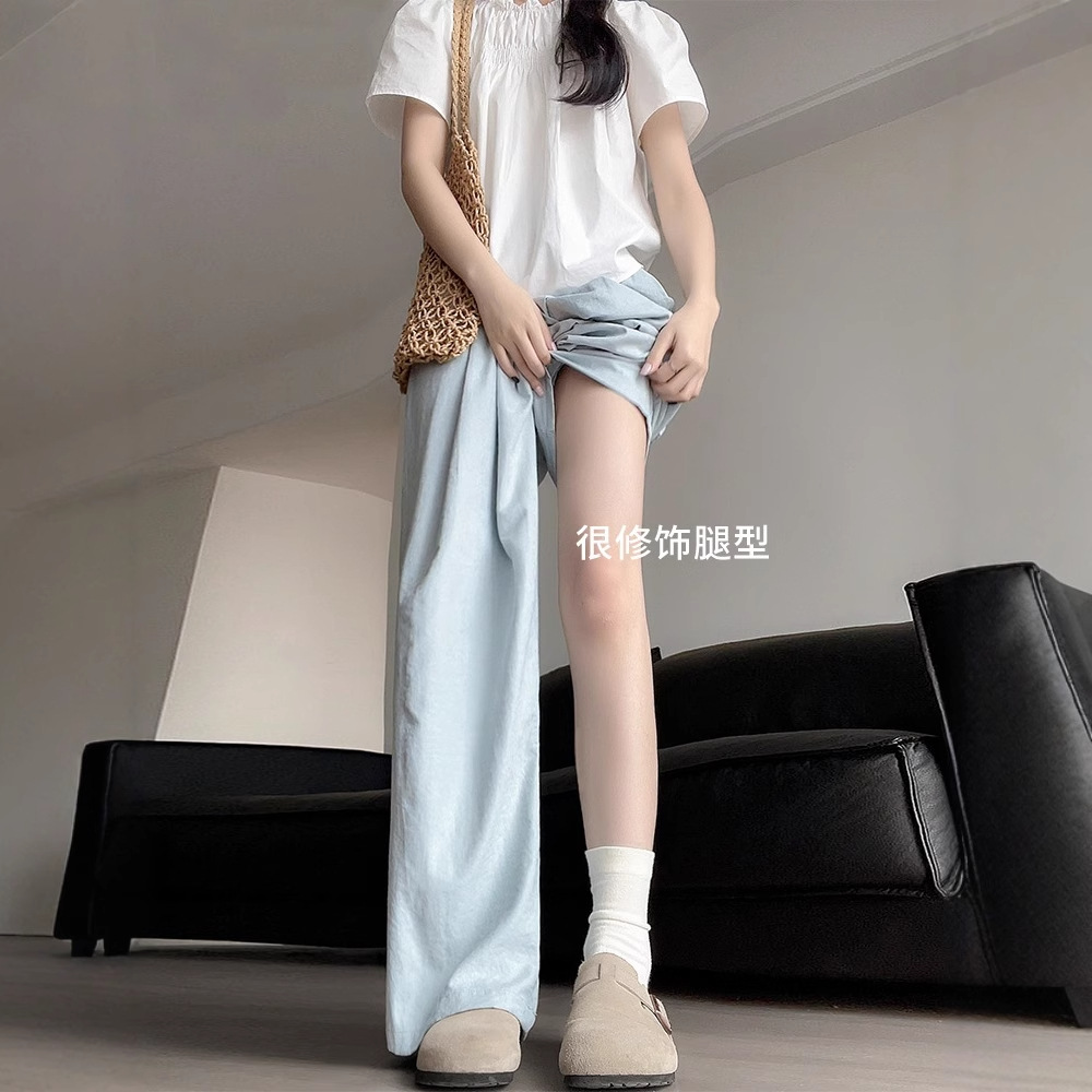 抖音质量蓝色山本裤女2025新款高腰直筒奶芙裤肌理感慵懒阔腿长裤