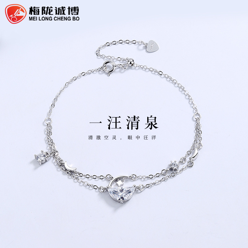 925纯银一汪清泉水晶手链女韩版ins小众设计高级感简约个性手饰品