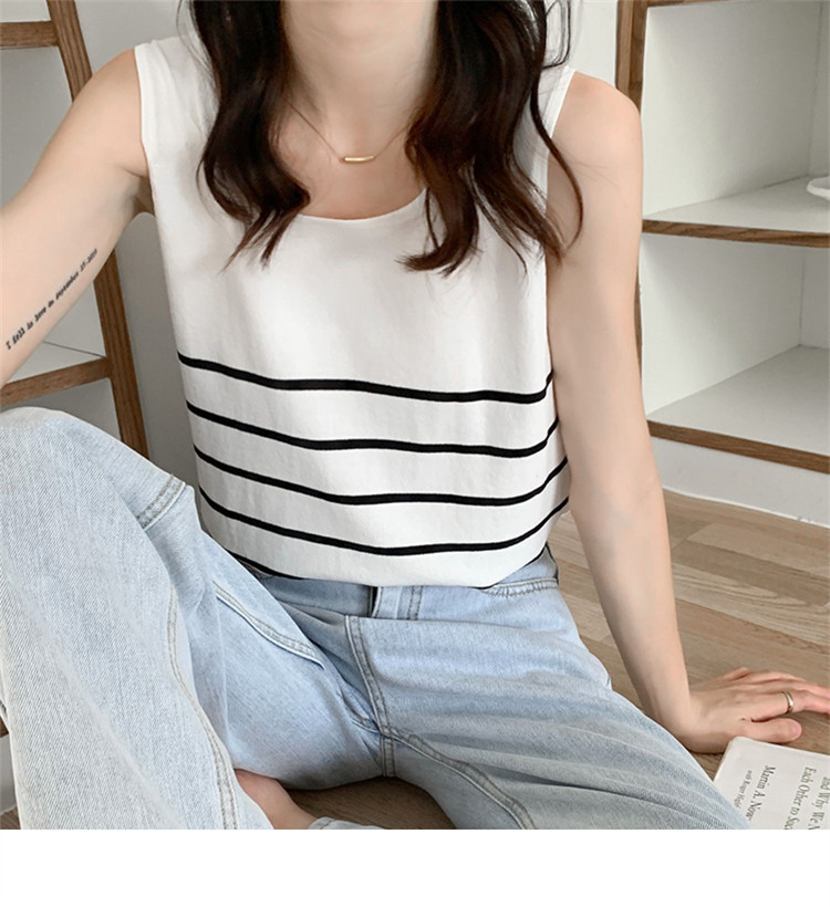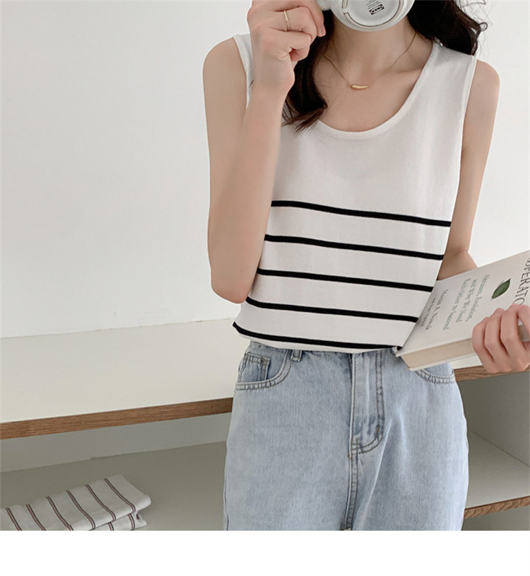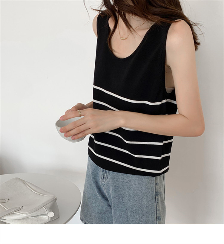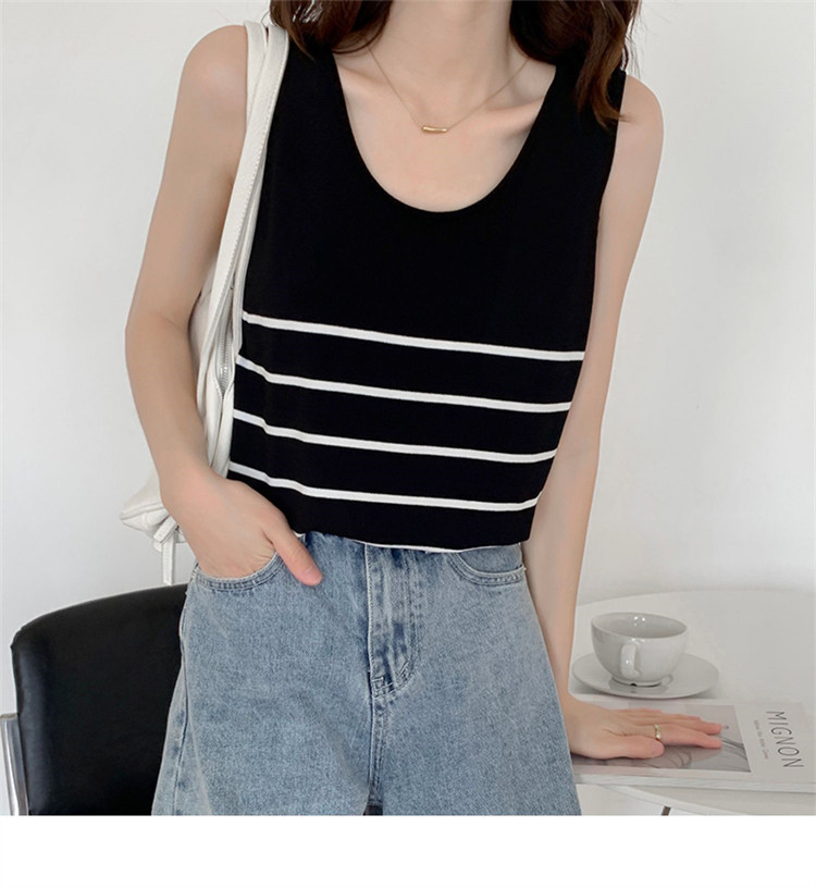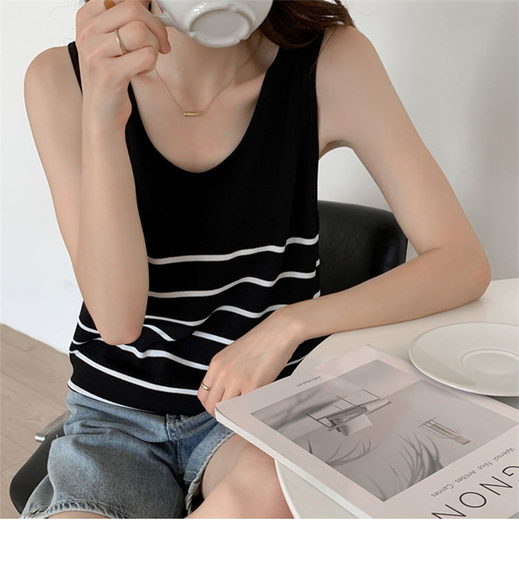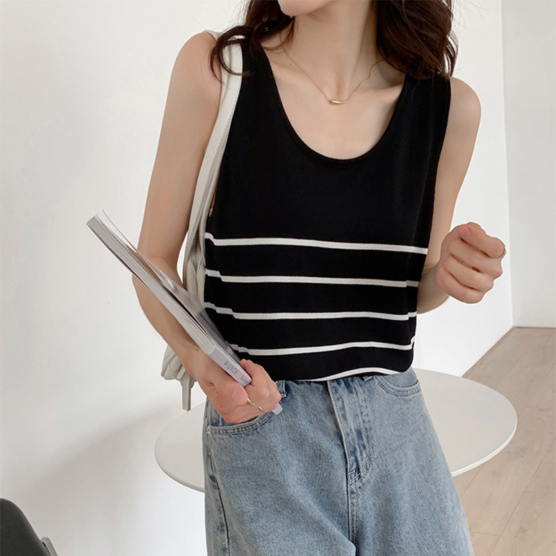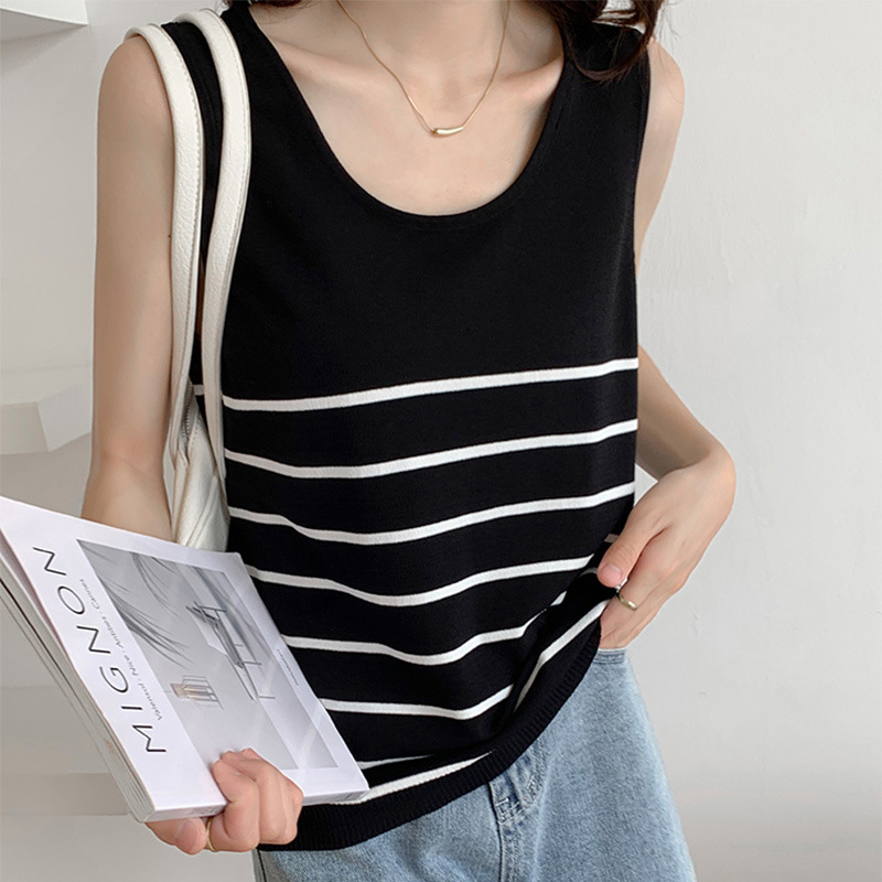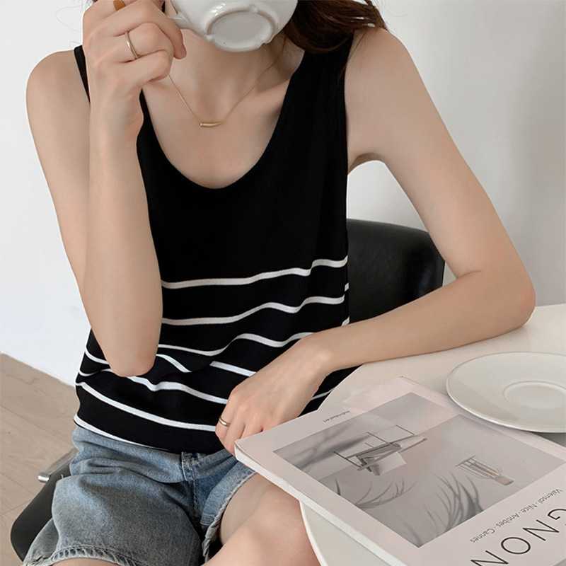 冰丝针织小吊带背心女内搭夏外穿宽松条纹无袖T恤上衣甜辣妹穿搭