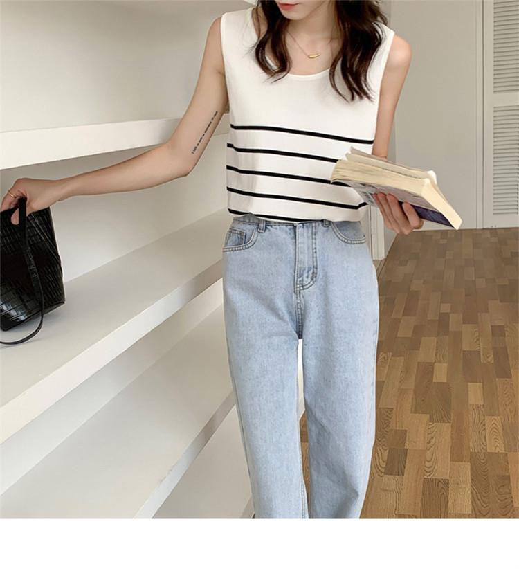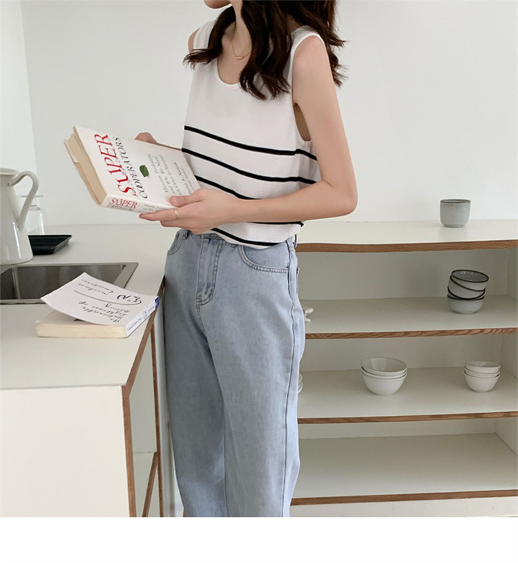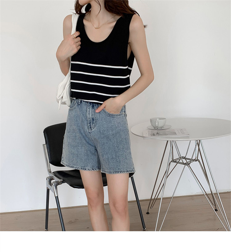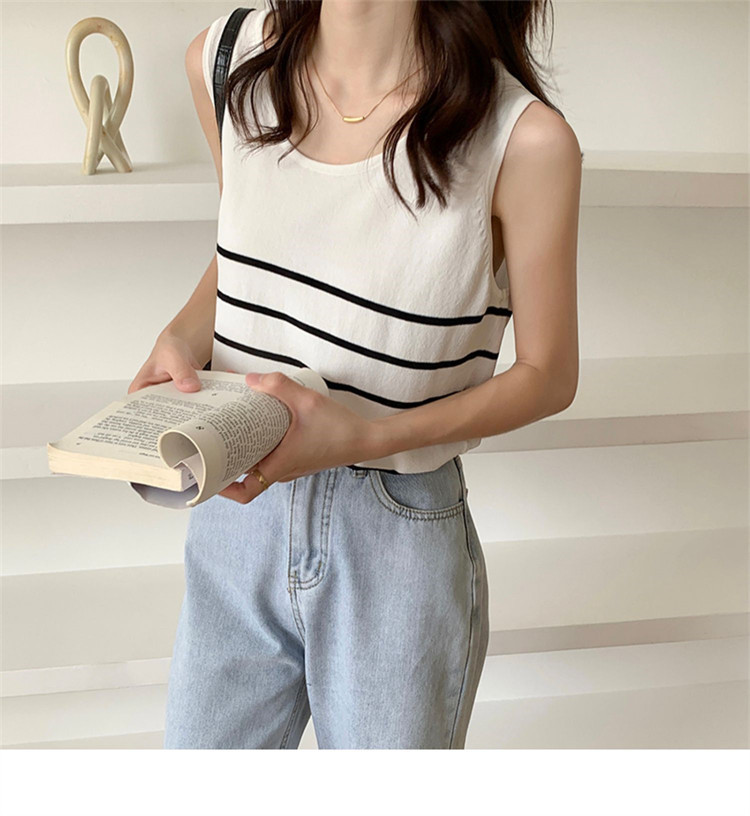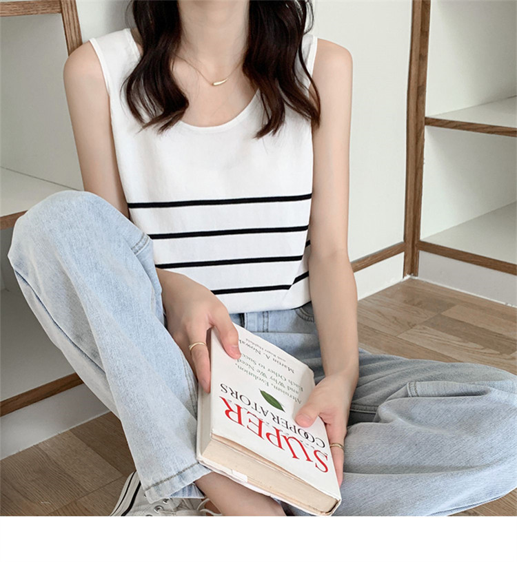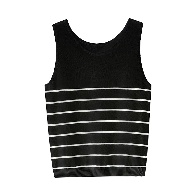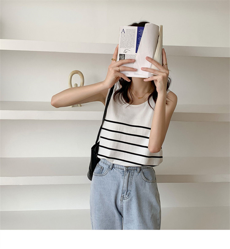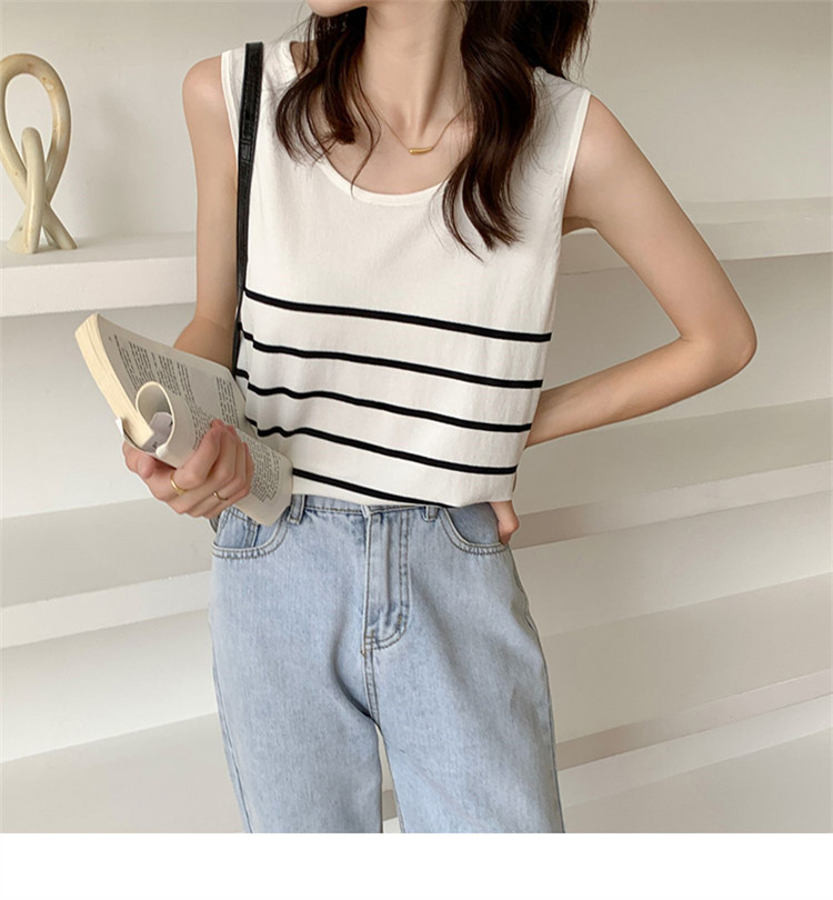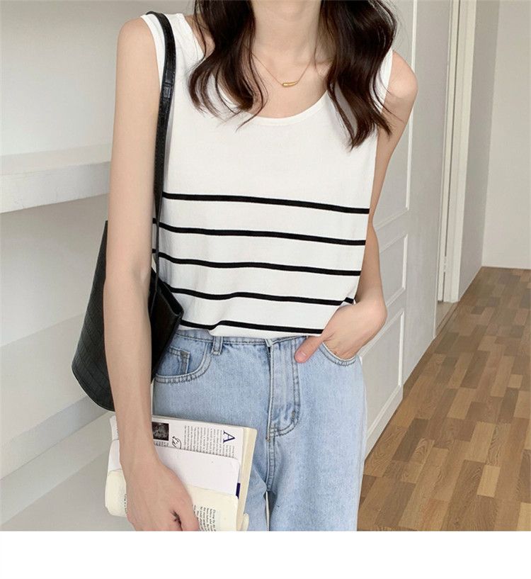 冰丝针织小吊带背心女内搭夏外穿宽松条纹无袖T恤上衣甜辣妹穿搭